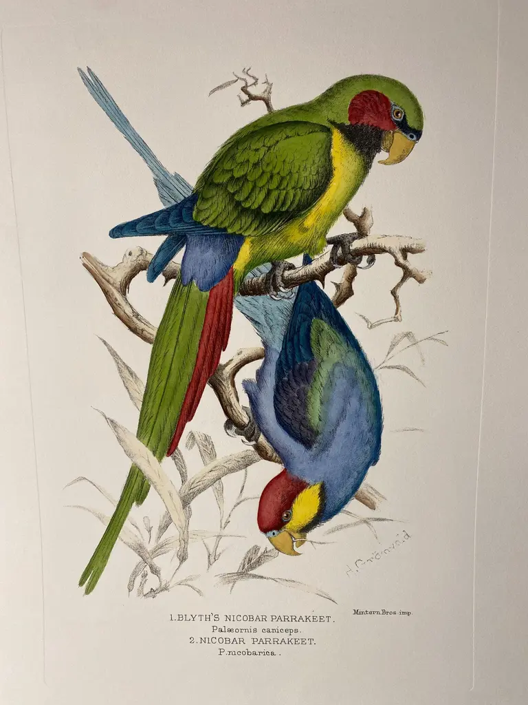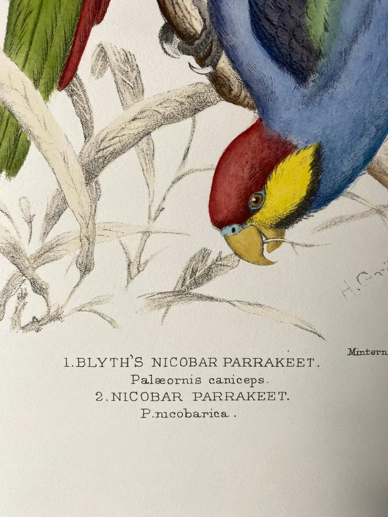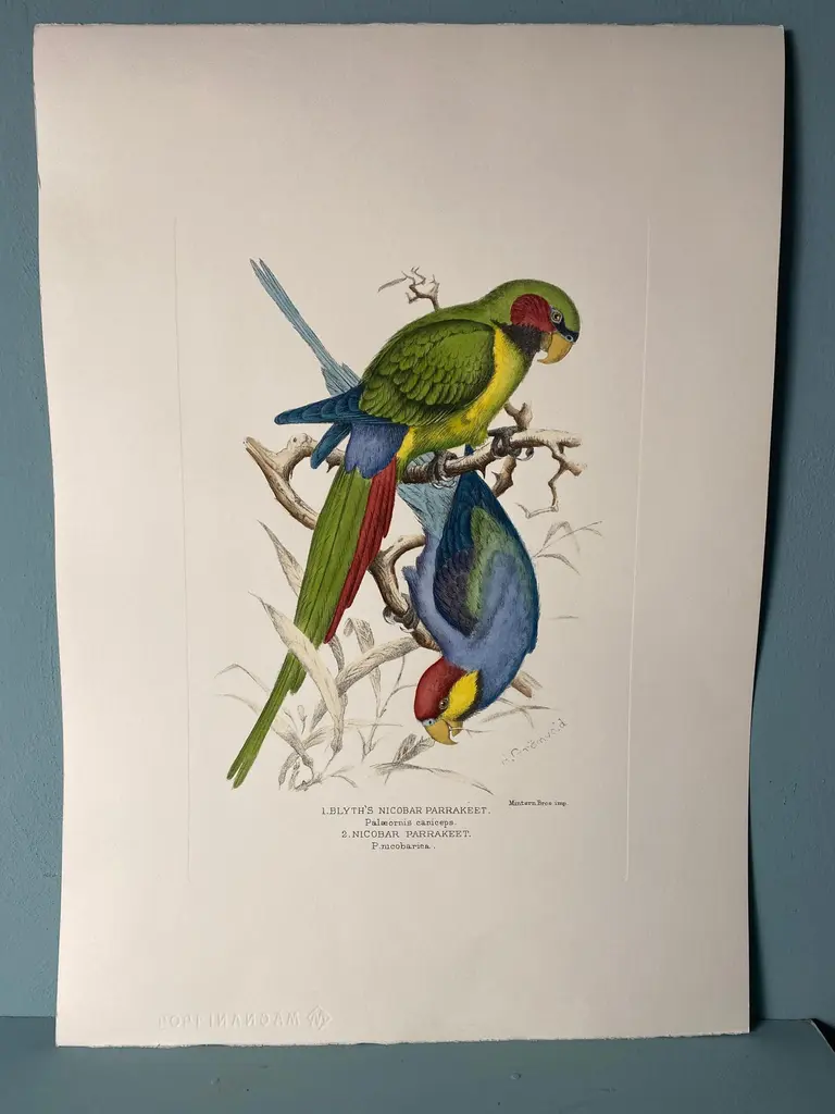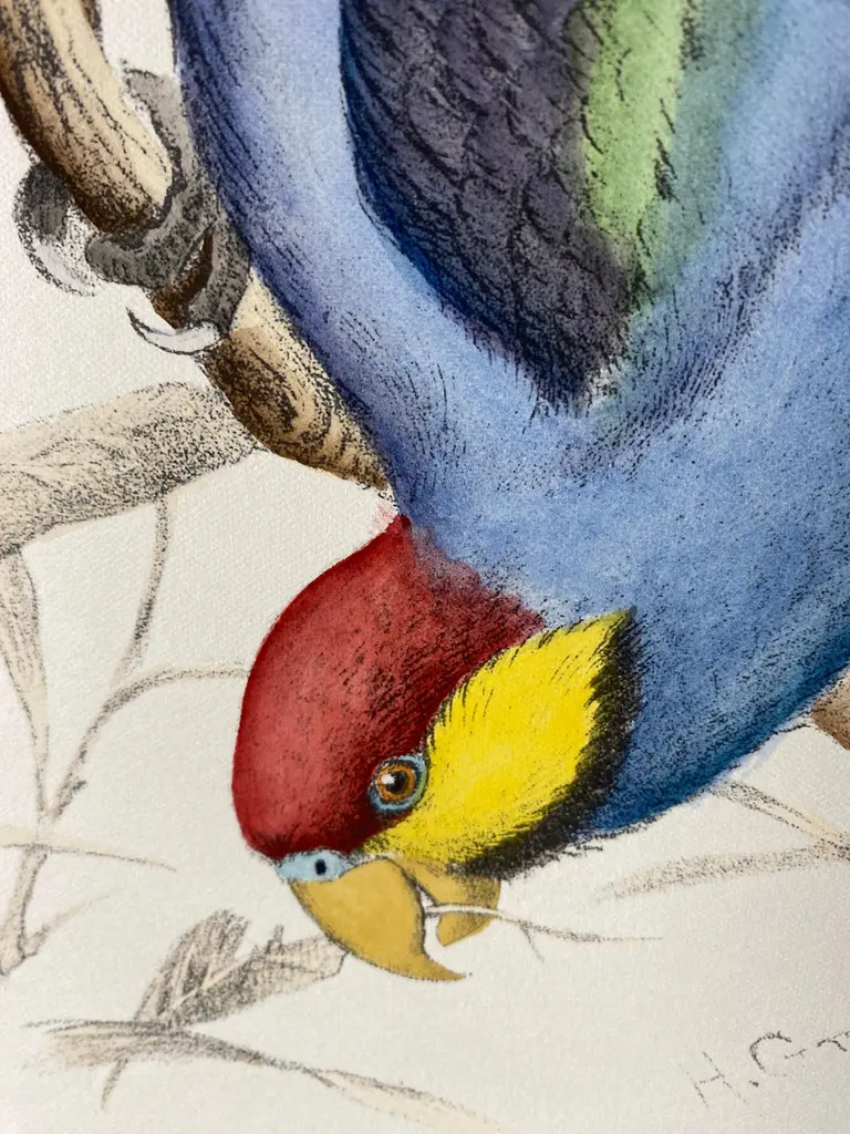 Italian Contemporary Hand Painted Print By Henrik Grönvold "Parrakeets" 2 Of 3