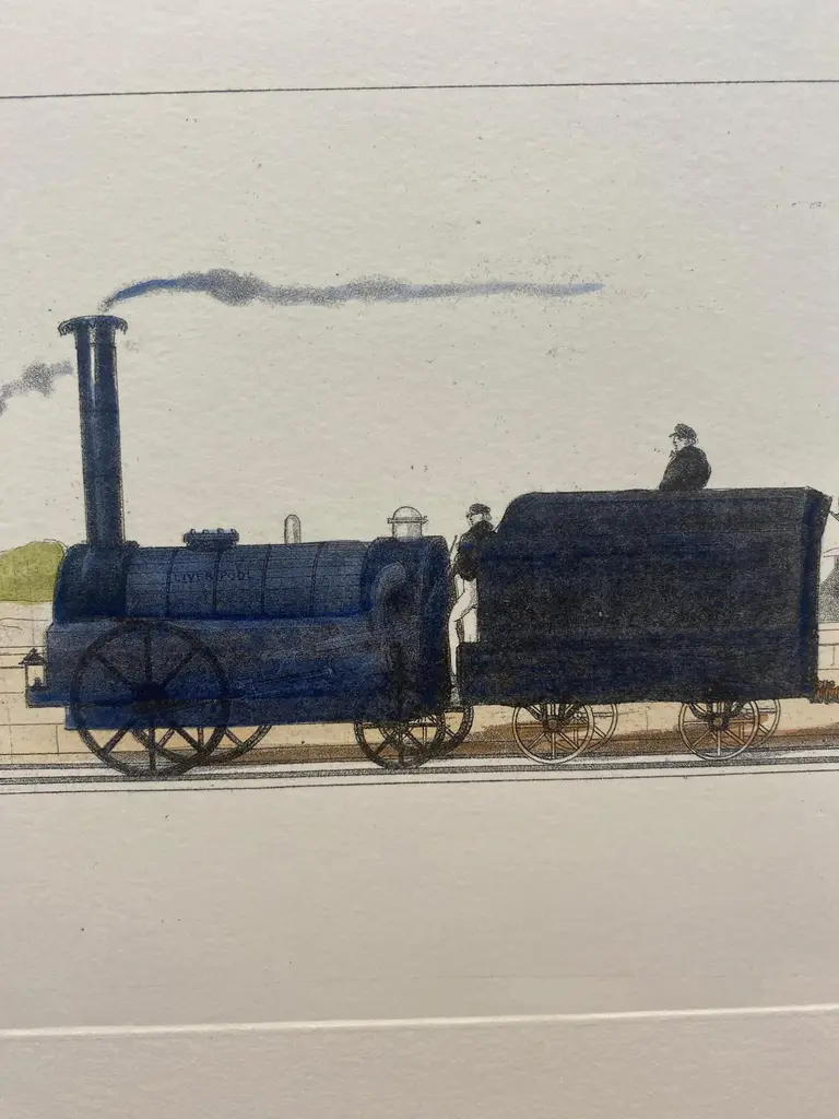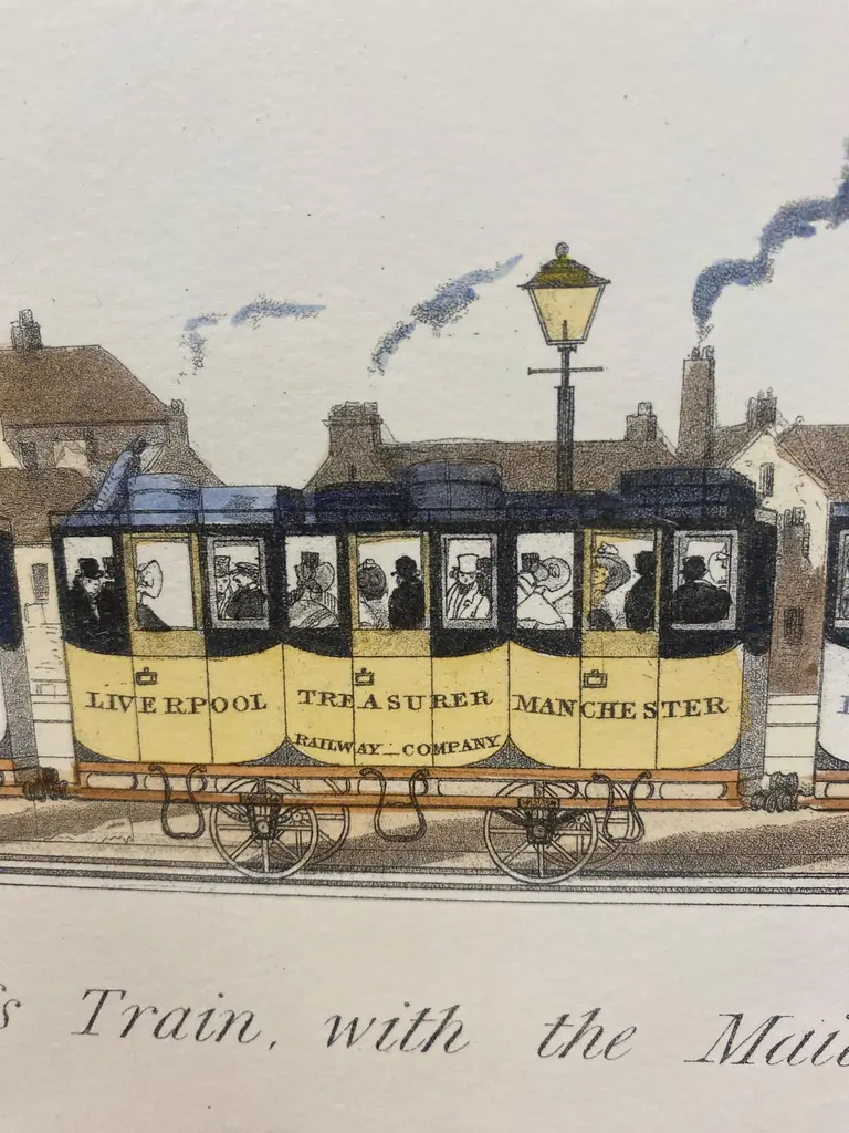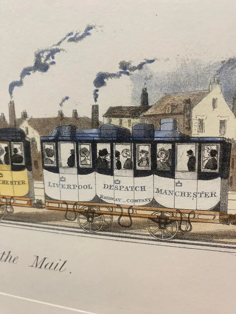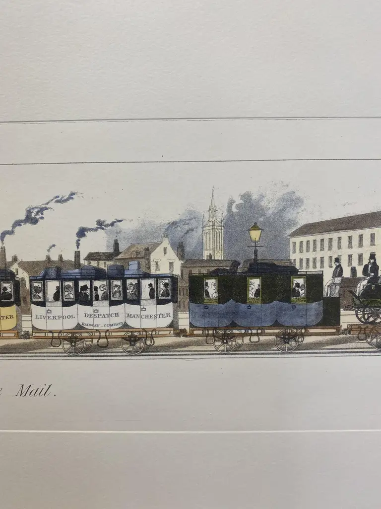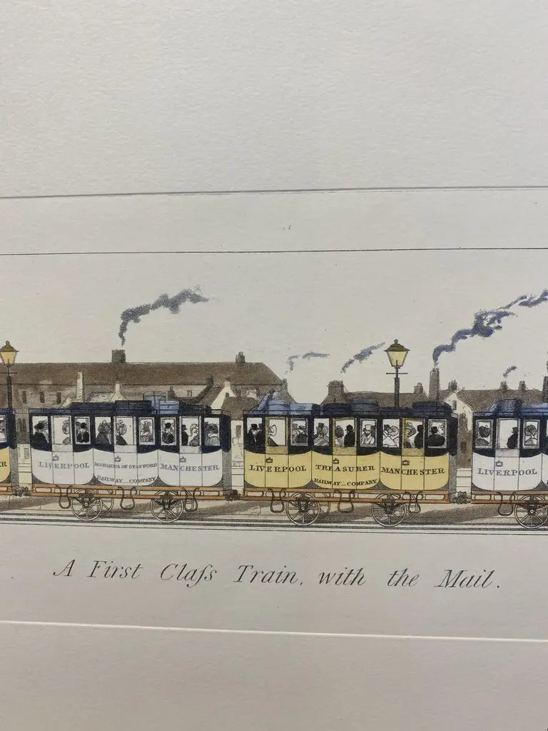 Italian Contemporary Hand Painted Print English First Class Mail Train 2 Of 2