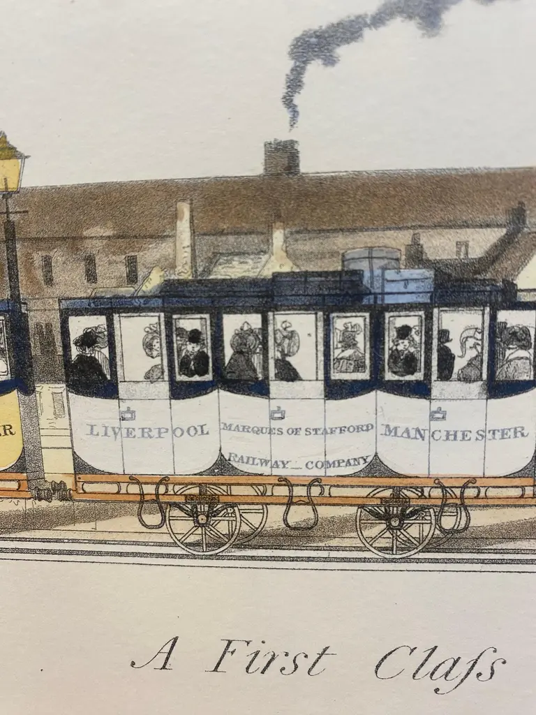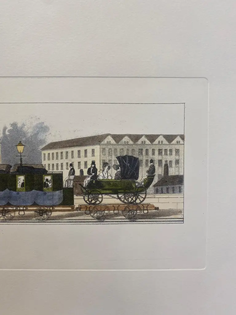 Elegant and refined print representing "A First Class Train, with the Mail", with a steam locomotive, the first class carriages loaded with passengers. All enhanced by the beautiful hand-made watercolor and by the graphic characters inserted to describe every little detail of the trains and the english railway work activity.Two different prints are available to create a colorful composition.Inside size of the print 15 cm x 60 cmAll the prints are completely hand-colored by our skilled craftsmen in Florence, Italy.With an experience of over 40 years, Artecornici design creates high-quality handmade frames using precious woods and working various types of high-quality finishes, lacquers and ageing, offering a vast choice of models.Each print is an artisanal Florentine product, reproducing images of the European 18th and 19th centuries with the same printing techniques (engraving with a star press), the golden age of prints, which are then finished and watercolored exclusively by handThe richness of our work lies in the ability to make our customers' requests our own, creating products with personalized, unique, and precious creations, renewing our collections year after year.