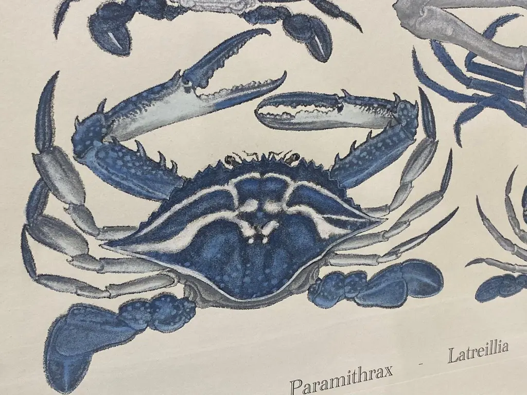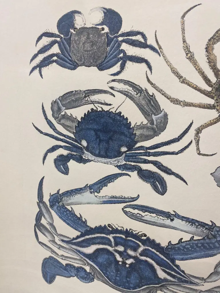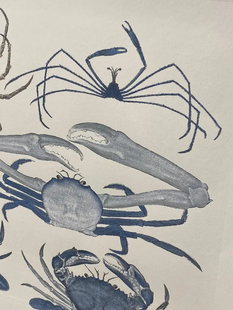 Italian Contemporary Hand Painted Print Japanese Sea Life "Crabs", 2 Of 6