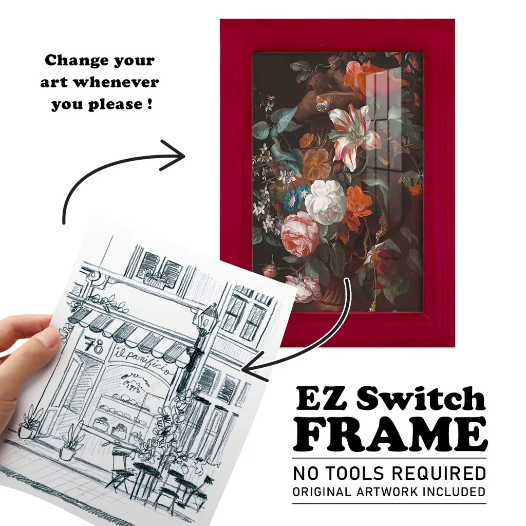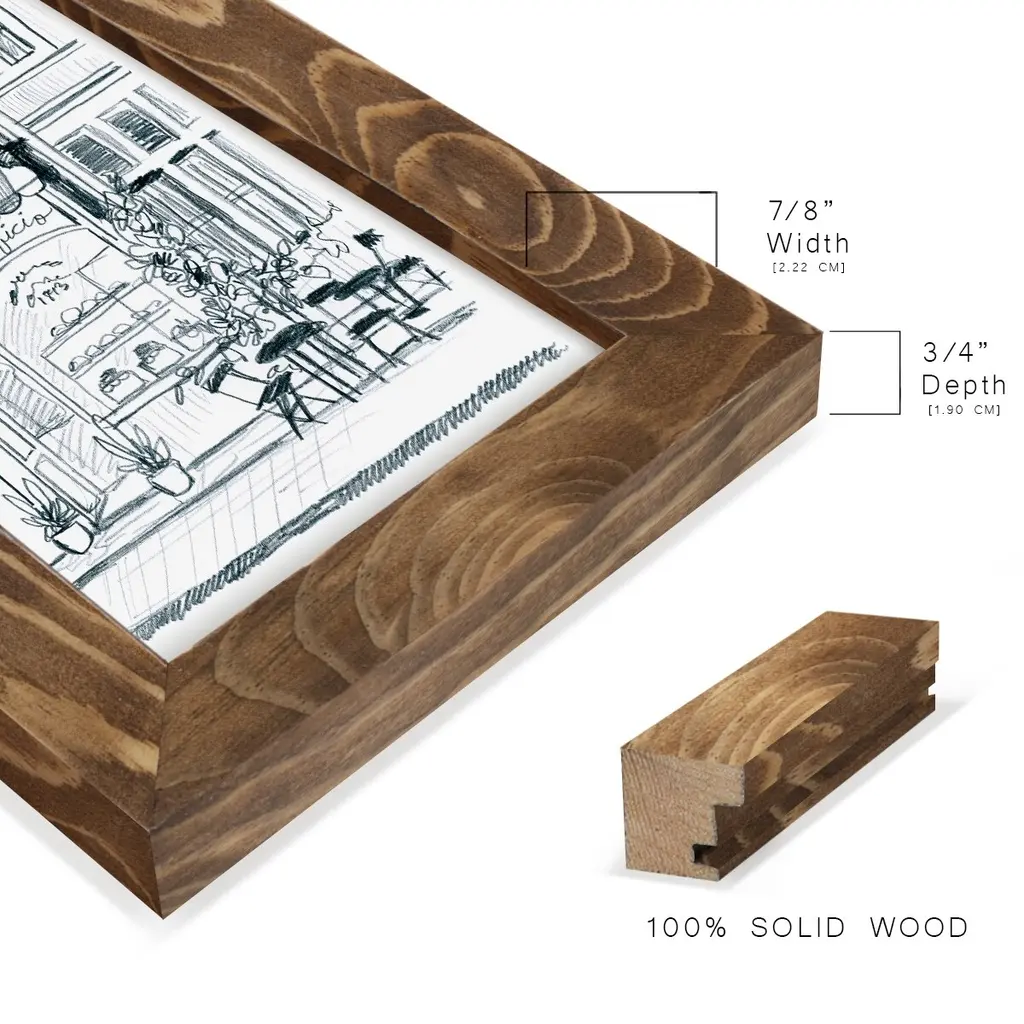 Italian Street Sketch I -EZ SWITCH Framed Print w/glass-Cherry Red A delightful, framed print. Featuring a solid wood frame with real wood glass. This premium print is giclee quality. In addition, every frame features a removable back and table top stand. This allows you to change your art in the future or to just stand the art on a table for a new look. We are sure you'll enjoy our new series of EZ SWITCH Framed Art. Solid Wood Frame Real Glass Removable / Replaceable Art Built in Tabletop Stand Sizes range from 4x6 up to 12x15 - buy just one or pair them up as sets as you see fit.