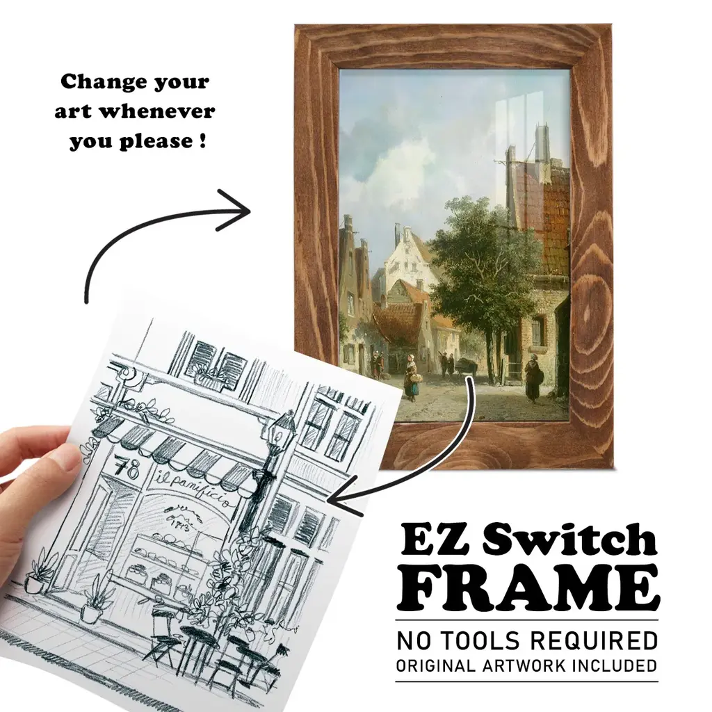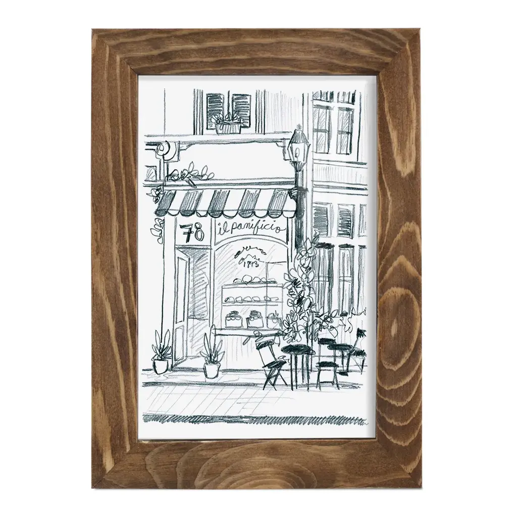 Italian Street Sketch I -EZ SWITCH Framed Print w/glass-Cherry Red A delightful, framed print. Featuring a solid wood frame with real wood glass. This premium print is giclee quality. In addition, every frame features a removable back and table top stand. This allows you to change your art in the future or to just stand the art on a table for a new look. We are sure you'll enjoy our new series of EZ SWITCH Framed Art. Solid Wood Frame Real Glass Removable / Replaceable Art Built in Tabletop Stand Sizes range from 4x6 up to 12x15 - buy just one or pair them up as sets as you see fit.