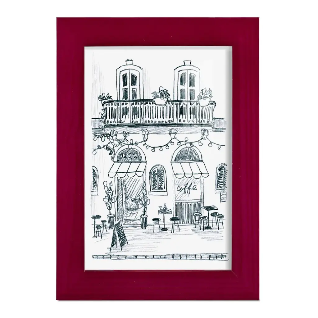Italian Street Sketch II -EZ SWITCH Framed Print w/glass-Cherry Red A delightful, framed print. Featuring a solid wood frame with real wood glass. This premium print is giclee quality. In addition, every frame features a removable back and table top stand. This allows you to change your art in the future or to just stand the art on a table for a new look. We are sure you'll enjoy our new series of EZ SWITCH Framed Art. Solid Wood Frame Real Glass Removable / Replaceable Art Built in Tabletop Stand Sizes range from 4x6 up to 12x15 - buy just one or pair them up as sets as you see fit.