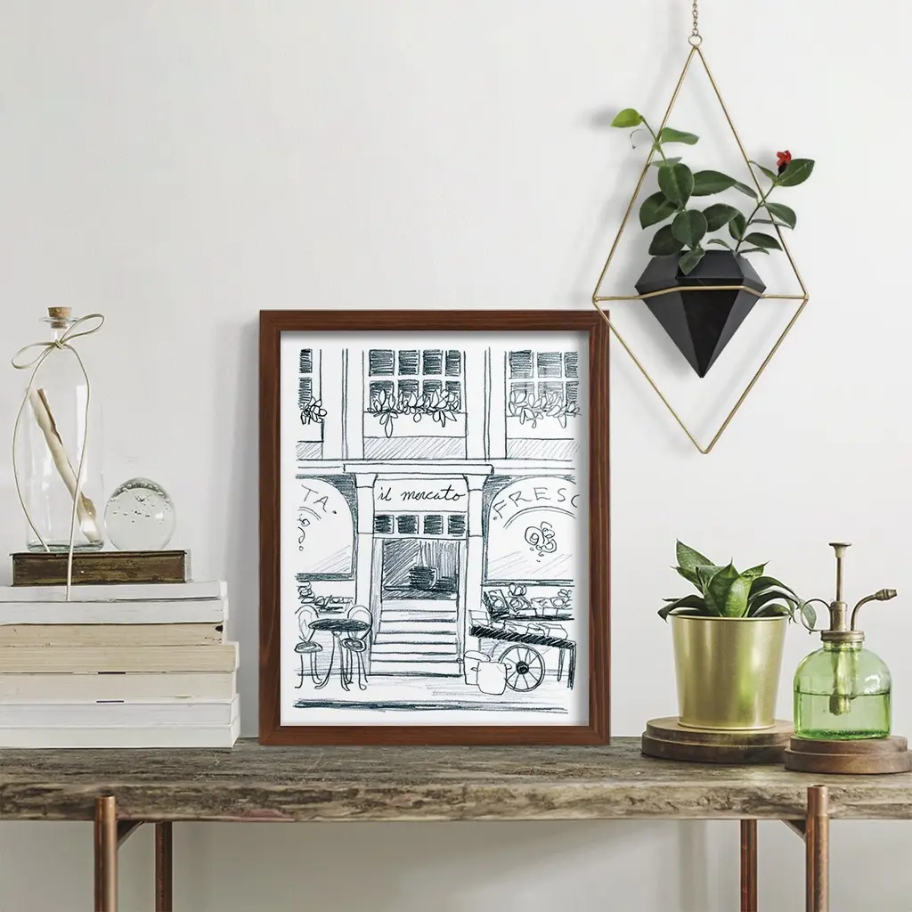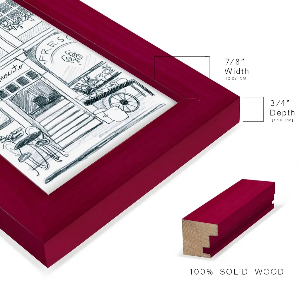 Italian Street Sketch IV -EZ SWITCH Framed Print w/glass-Cherry Red A delightful, framed print. Featuring a solid wood frame with real wood glass. This premium print is giclee quality. In addition, every frame features a removable back and table top stand. This allows you to change your art in the future or to just stand the art on a table for a new look. We are sure you'll enjoy our new series of EZ SWITCH Framed Art. Solid Wood Frame Real Glass Removable / Replaceable Art Built in Tabletop Stand Sizes range from 4x6 up to 12x15 - buy just one or pair them up as sets as you see fit.