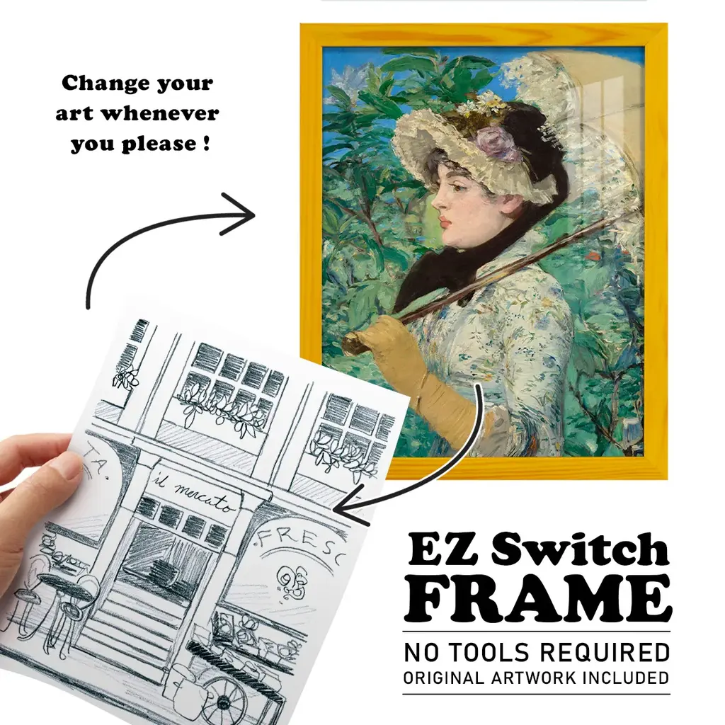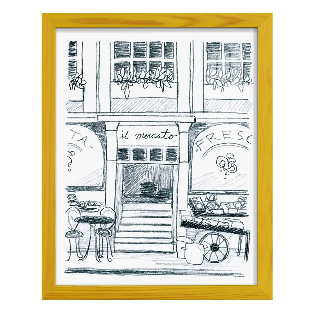 Italian Street Sketch IV -EZ SWITCH Framed Print w/glass-Cherry Red A delightful, framed print. Featuring a solid wood frame with real wood glass. This premium print is giclee quality. In addition, every frame features a removable back and table top stand. This allows you to change your art in the future or to just stand the art on a table for a new look. We are sure you'll enjoy our new series of EZ SWITCH Framed Art. Solid Wood Frame Real Glass Removable / Replaceable Art Built in Tabletop Stand Sizes range from 4x6 up to 12x15 - buy just one or pair them up as sets as you see fit.