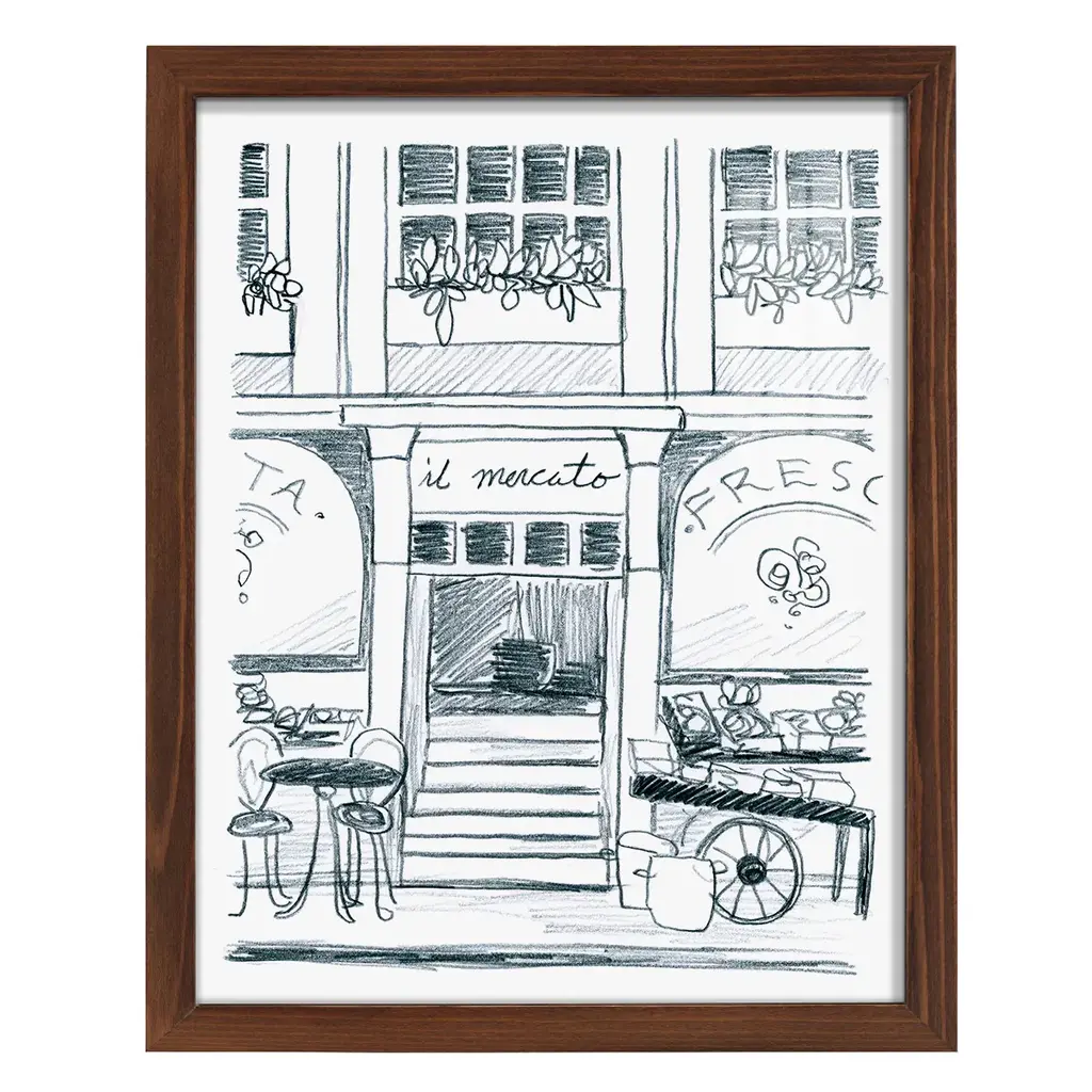 Italian Street Sketch Iv -Framed Print W/glass-Cherry Red - 4X6 - Blue