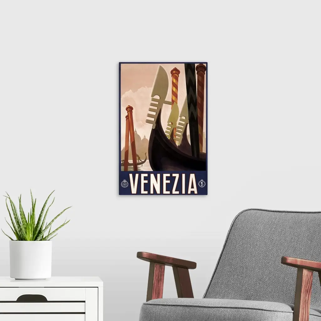 Poster promoting travel to Venice, Italy, from the 1920s.