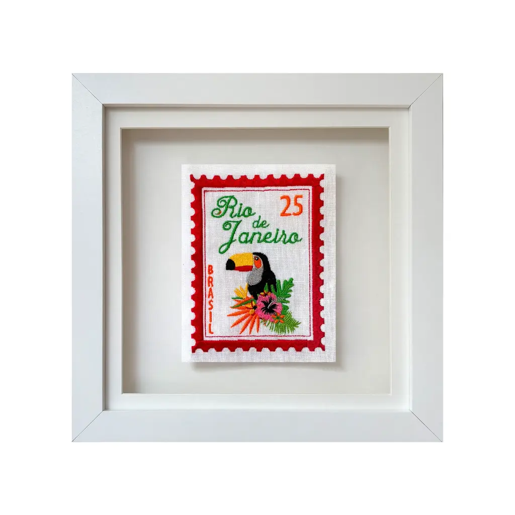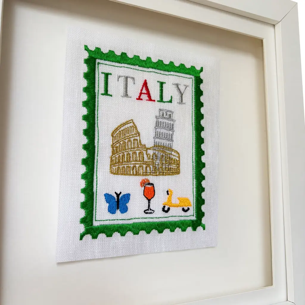 Hello, I’m Emma the owner of Lilly Loves - an embroidery studio located in London.I wanted to create a range of unique embroidered stamps from all over the world, inspired by Italy; these are bright and fun with a playful twist. We stitch all of these in our London studio and use beautiful floating frames. 10"x10" inches 3D Deep Box Frame