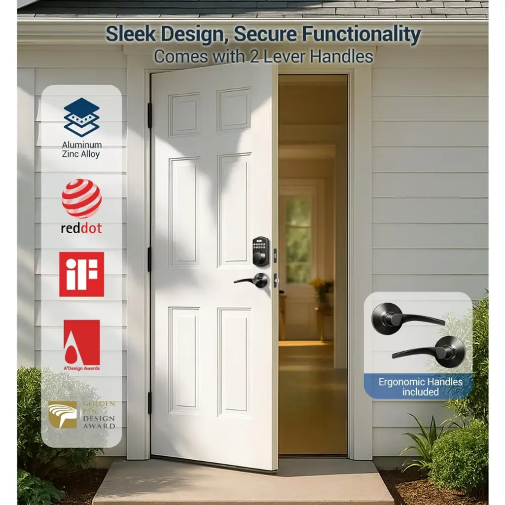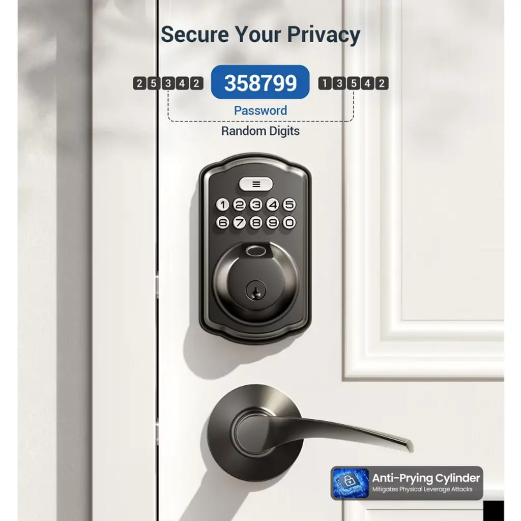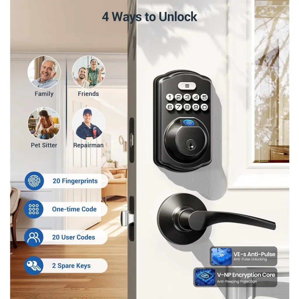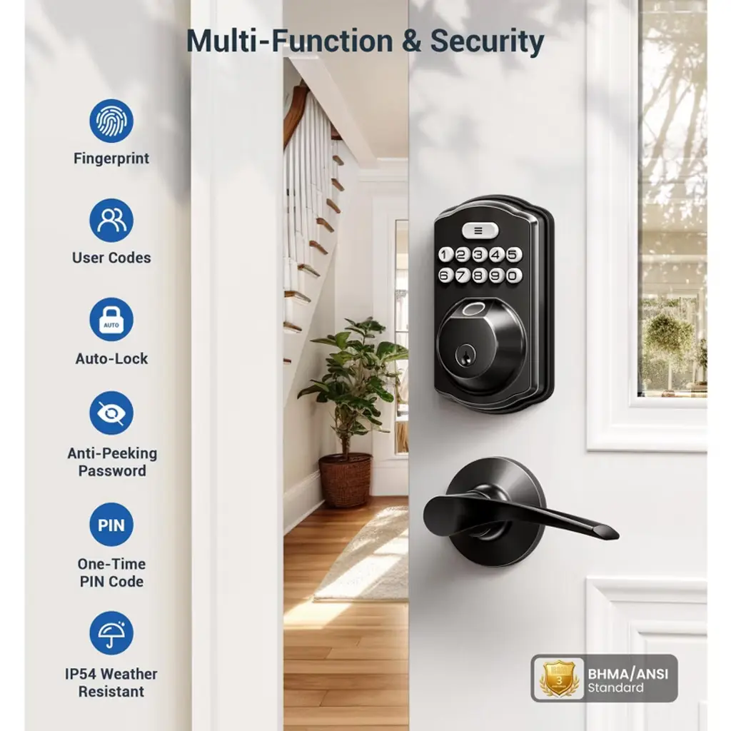 Itopfox Fingerprint Door Lock With Keyless Entry, Electronic Keypad Deadbolt, Digital Smart Code & Front Handle Sets, Auto-locking, Easy Install