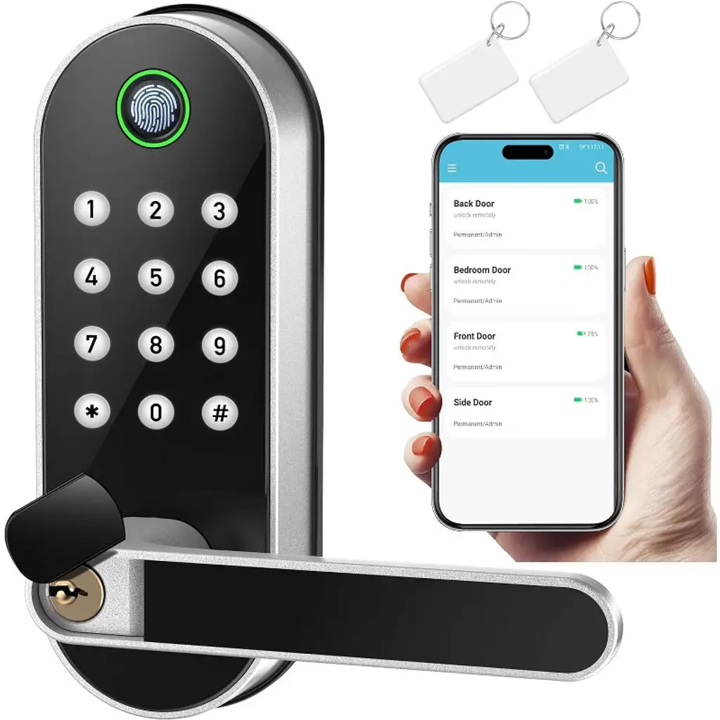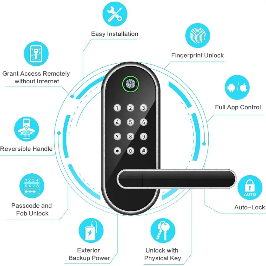 Upgrade your home or rental property's security with this keyless entry fingerprint smart lock. It offers 6 - in - 1 access methods, allowing you to unlock in just 0.3 seconds. Whether it's through fingerprint, passcode, fob, card, app, or key, you have multiple options for convenience. The lock is BHMA/ANSI certified and IP65 weather - resistant, ensuring durability and security. Installation is a breeze, requiring only a screwdriver and no drilling. It fits both left - and right - hand doors. For rentals, pair it with a separately - sold WiFi gateway to remotely share passcodes, view real - time activity logs, and integrate with Alexa/Google Assistant. Manage multiple locks from one account via the app or web portal. This lock is perfect for front, interior, exterior, and bedroom doors, providing a comprehensive security solution for homeowners, short - term rental hosts, and property managers.