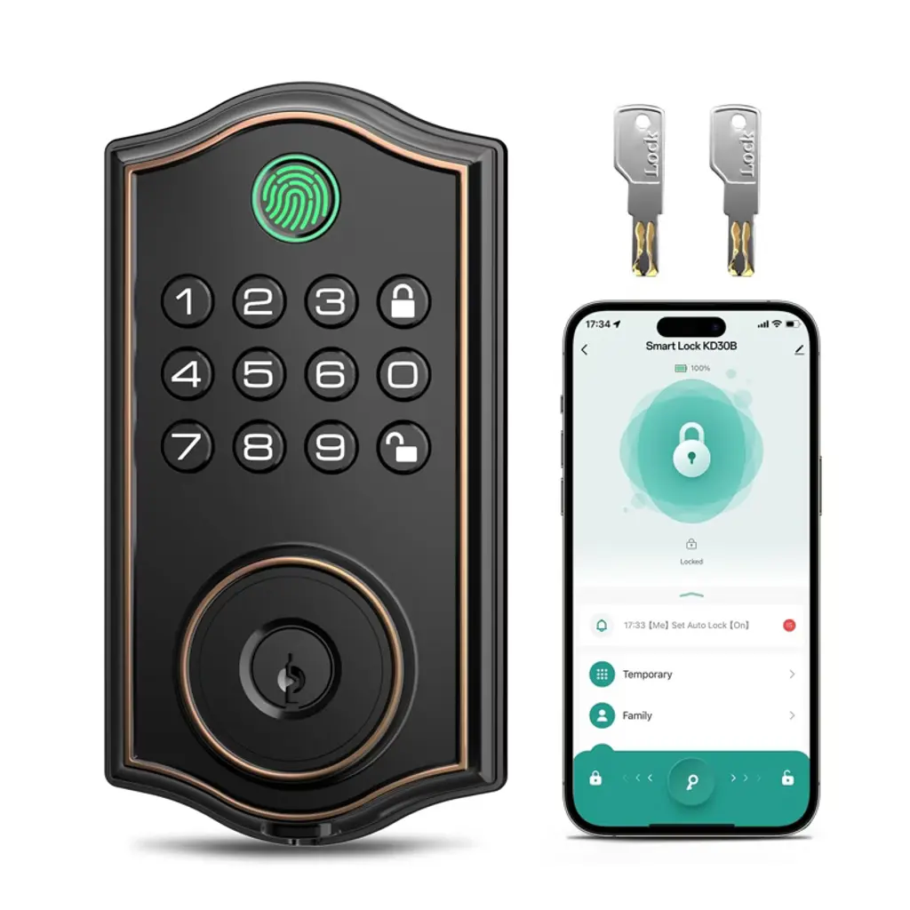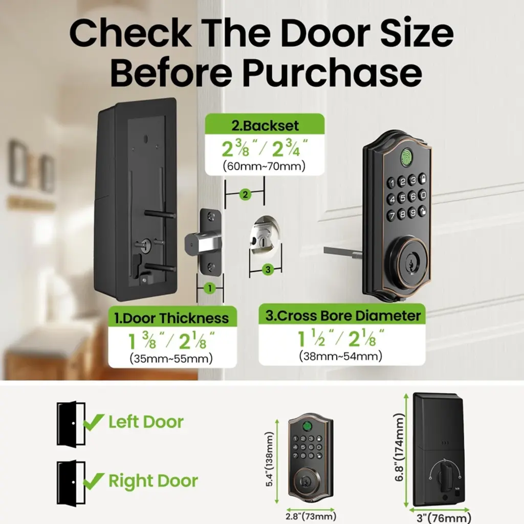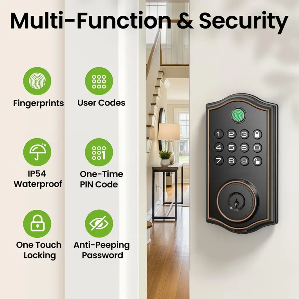 Itopfox Smart Deadbolt Lock For Front Door, Keyless Entry With Keypad, App Remote, Auto Lock, Easy Install, Fingerprint Door Lock For Home, Airbnb
