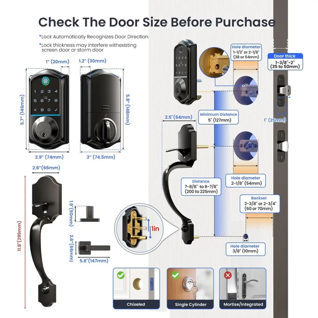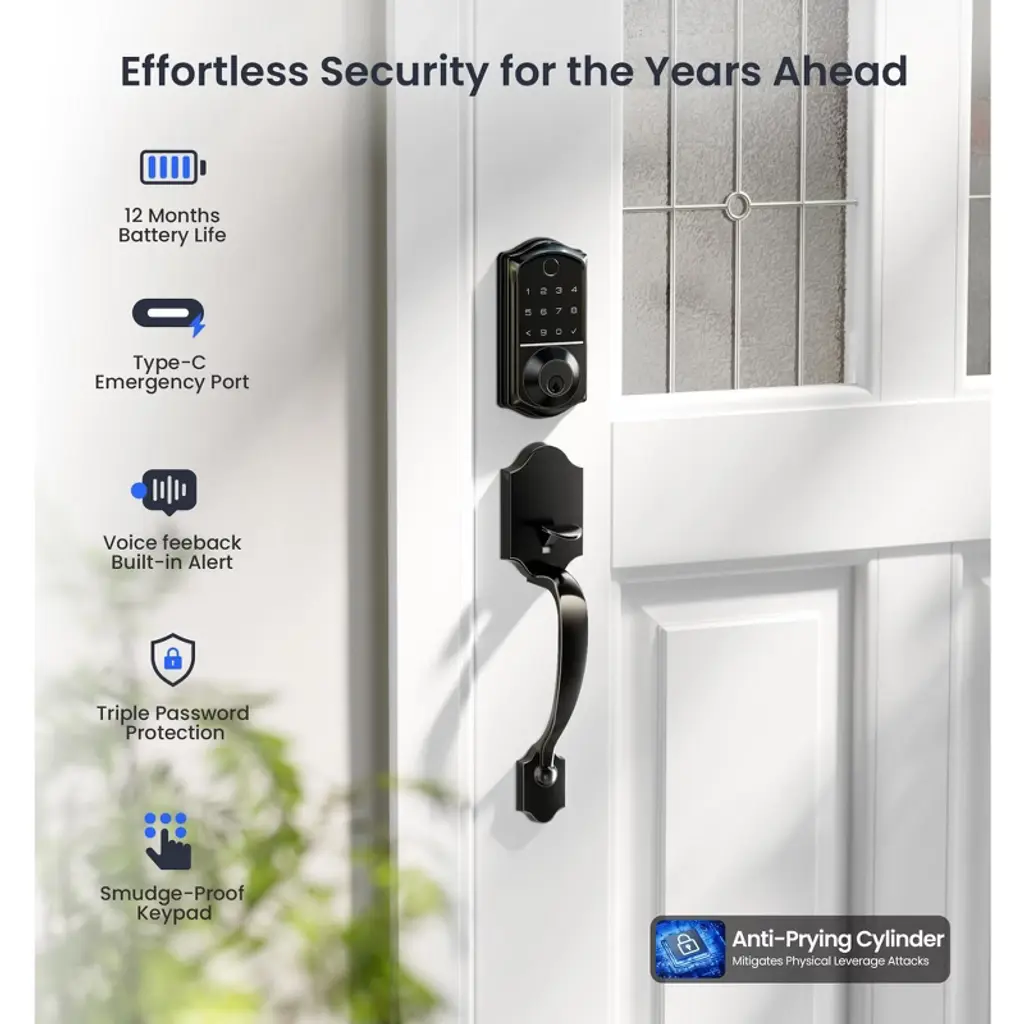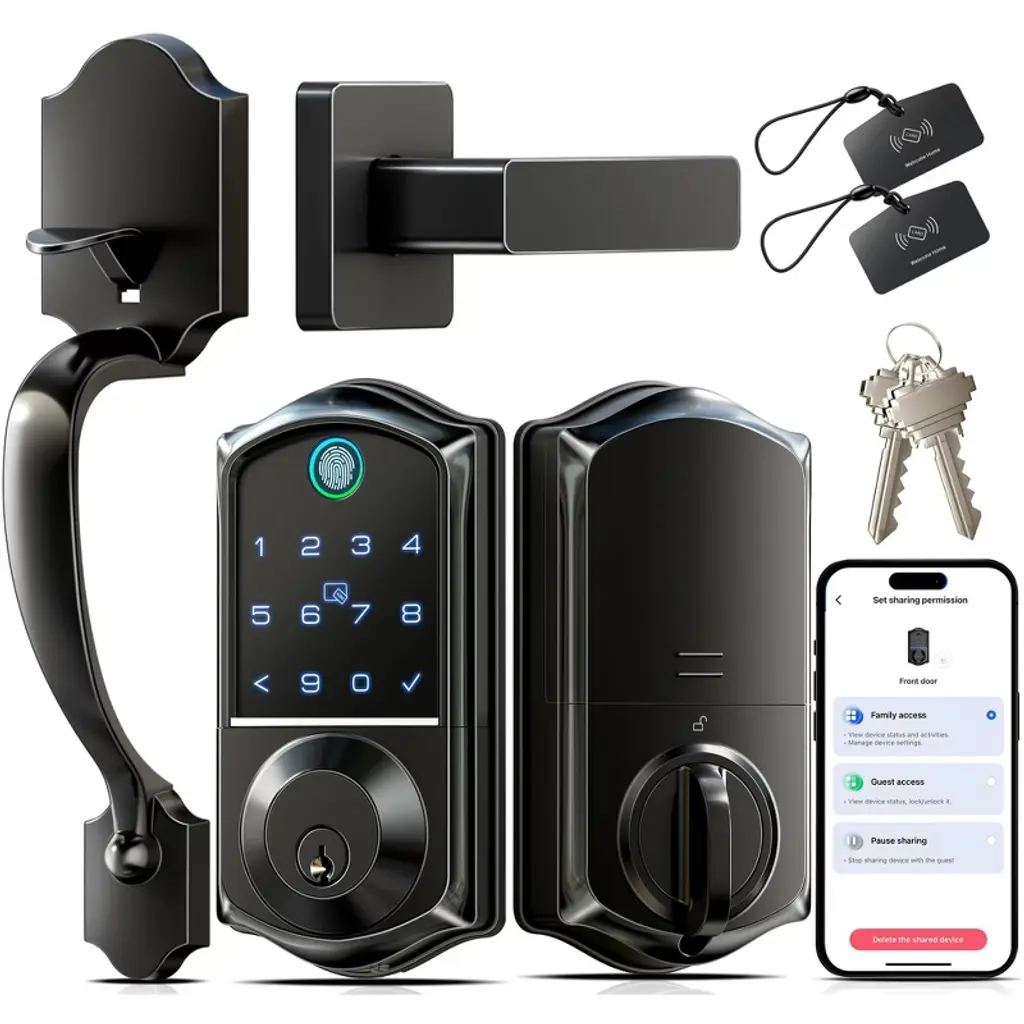 Itopfox Smart Front Door Lock Set With Fingerprint, App Control, Keyless Entry Deadbolt, Handle, Touchscreen Keypad, Auto Lock, Emergency Power Port