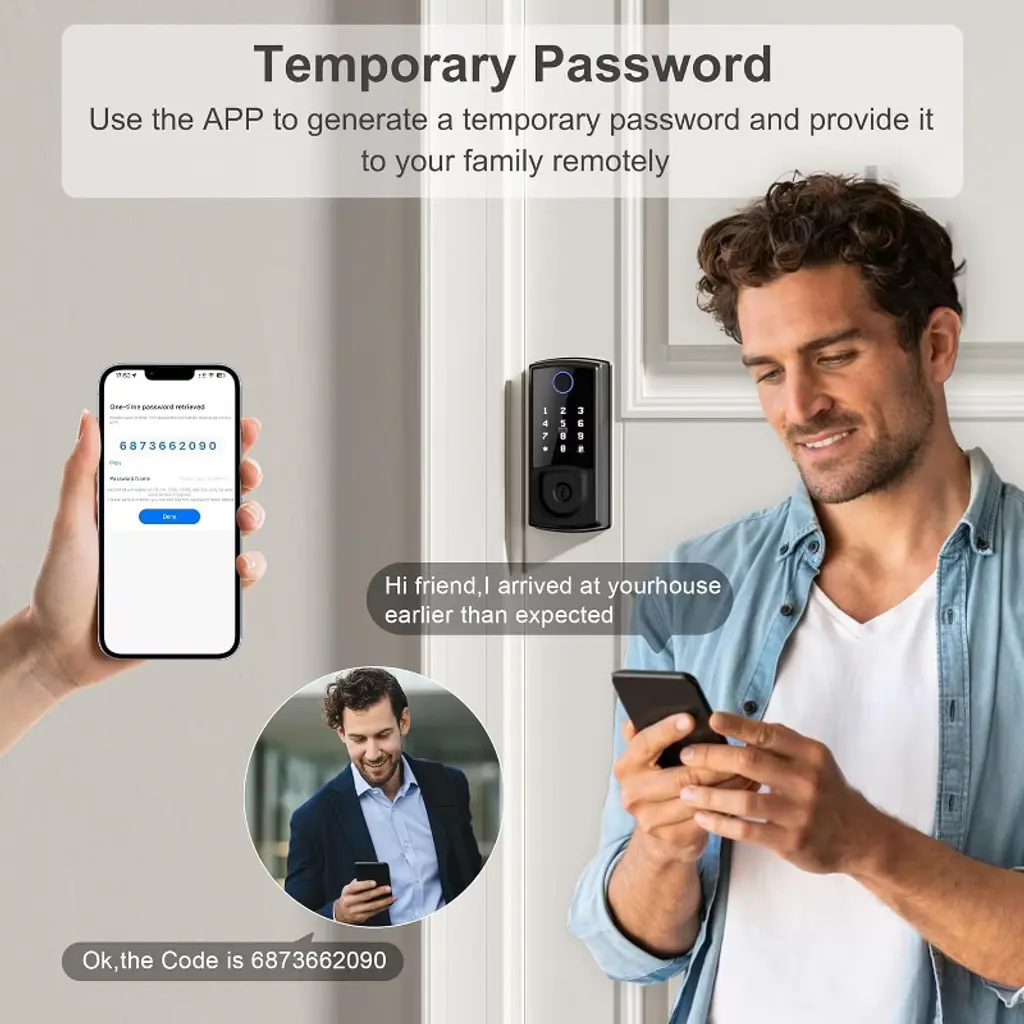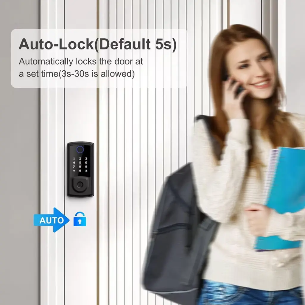 Upgrade your home security with this smart door lock. It's a keyless entry solution for the front door, featuring a touchscreen keypad and app remote control. With a 5 - in - 1 unlocking method, installation is a breeze, taking less than 10 minutes with just a screwdriver. You can unlock the door using an IC card, PIN code, or fingerprint. Homeowners can create temporary access codes for guests. The incorrect - try protection enhances security, and it operates well in temperatures from - 4°F to 131°F. The Tuya APP allows for remote control, including generating and sharing temporary passwords. It also offers easy setup, access management, and real - time notifications. The auto - lock and one - touch lock features provide convenience. Whether it's your home, apartment, office, or hotel, this door lock is a perfect fit, bringing you a new level of security and convenience.