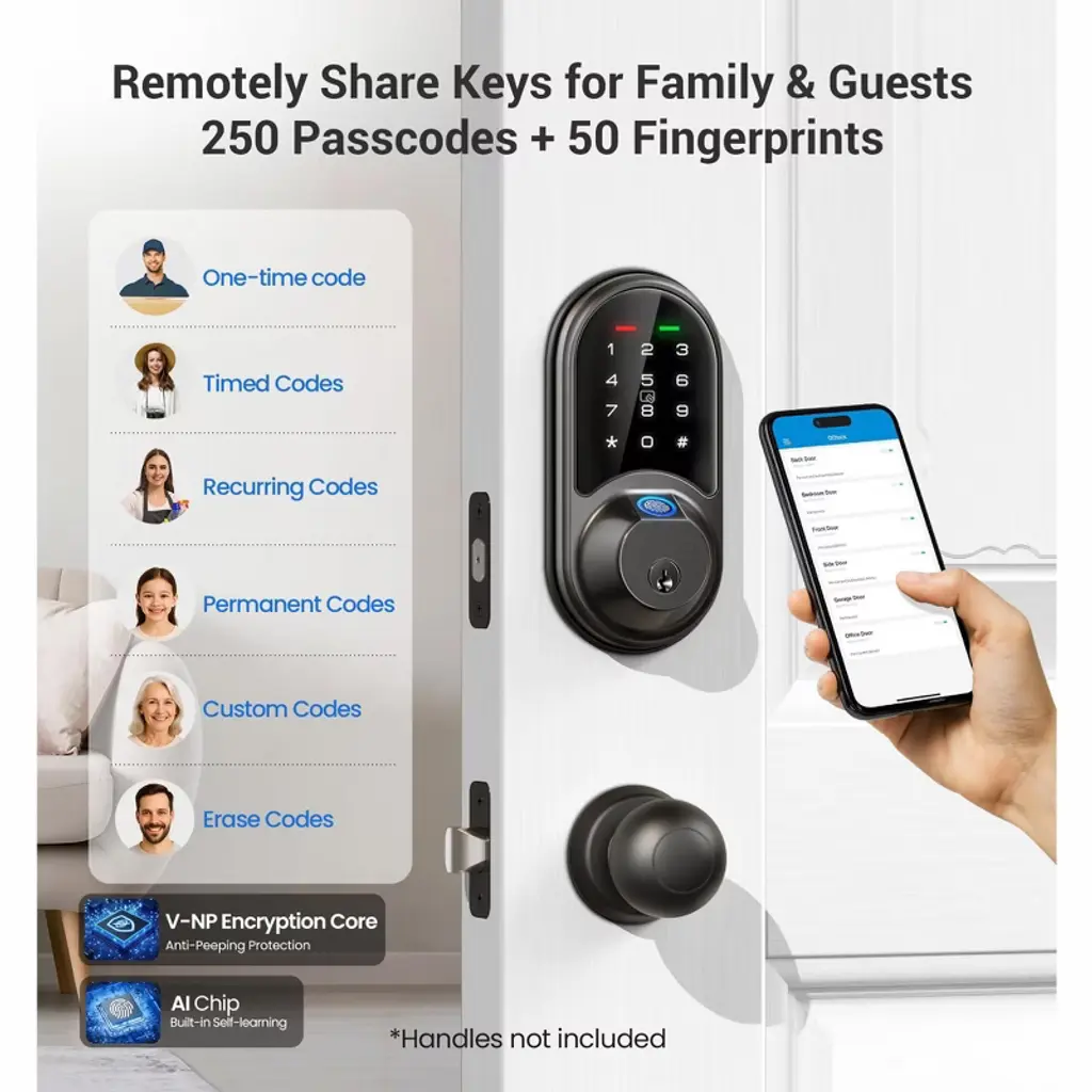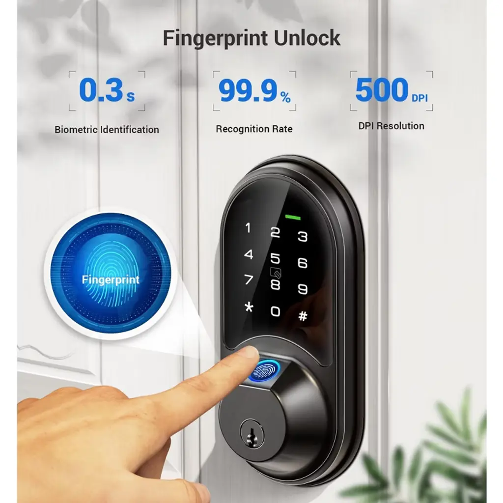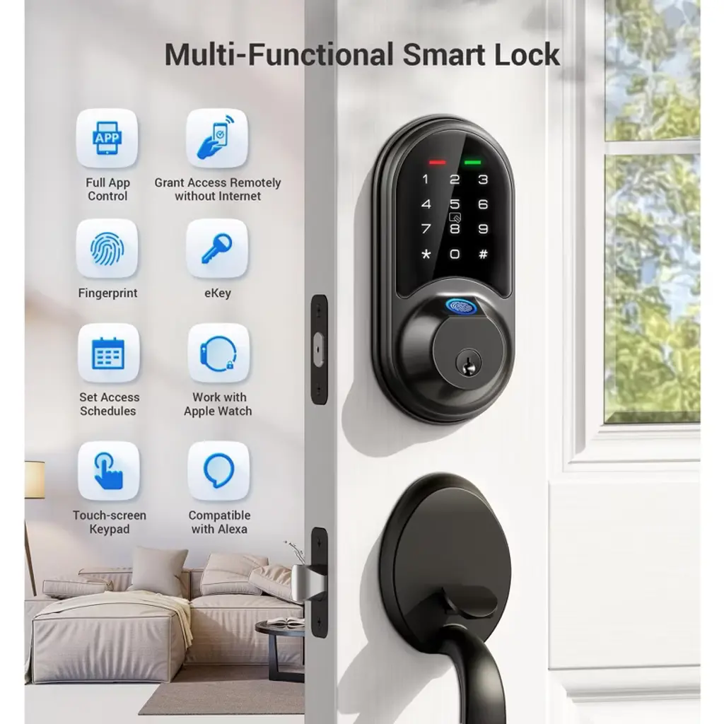 Itopfox Smart Lock, 7-in-1 Keyless Entry With Fingerprint, App Control, Touchscreen Keypad, Electronic Deadbolt For Front Door, Matte Black