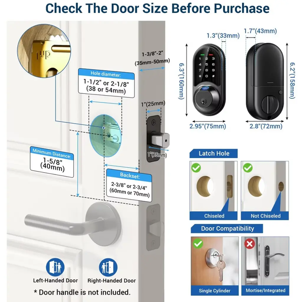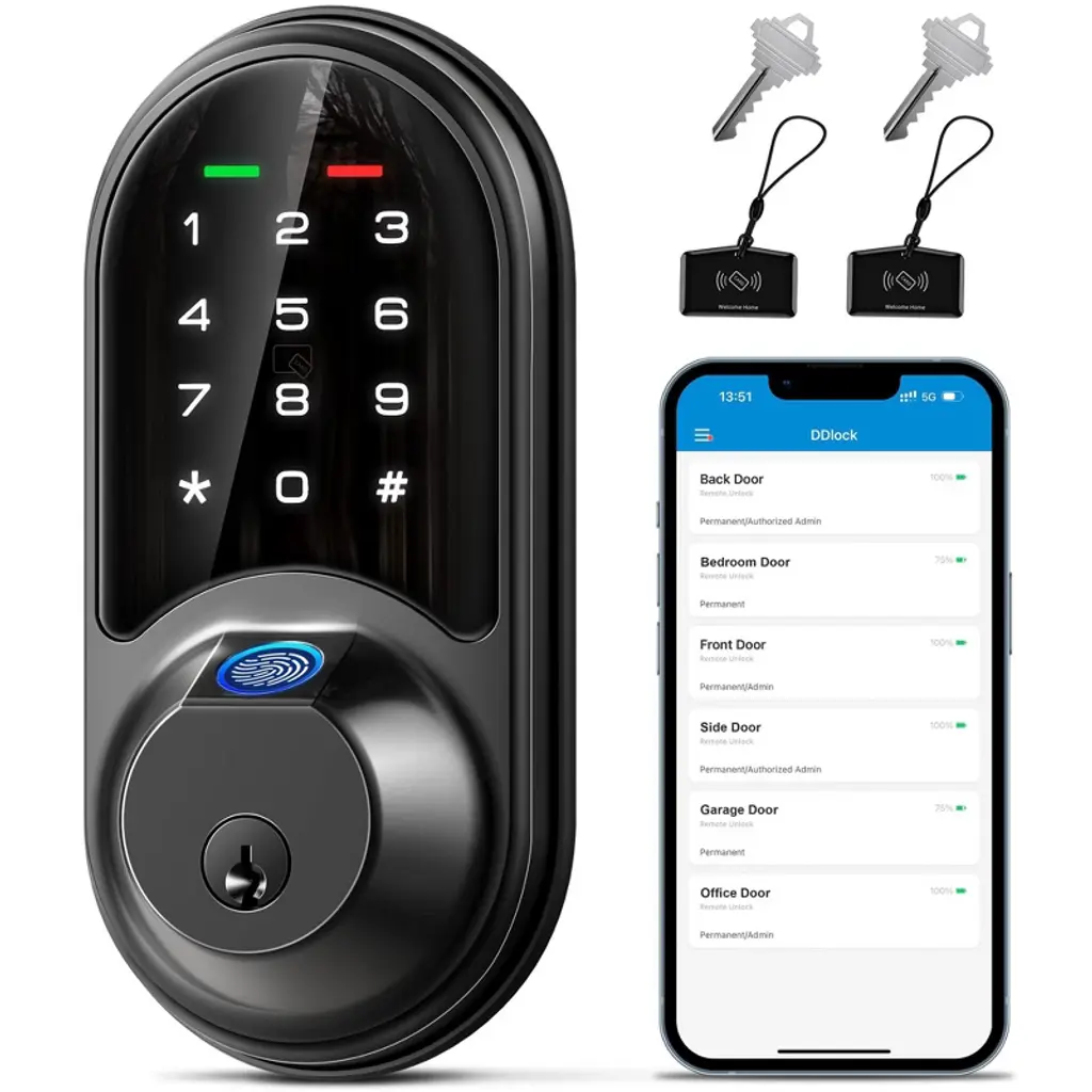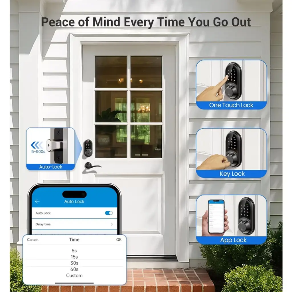 Itopfox Smart Lock, 7-in-1 Keyless Entry With Fingerprint, App Control, Touchscreen Keypad, Electronic Deadbolt For Front Door, Matte Black