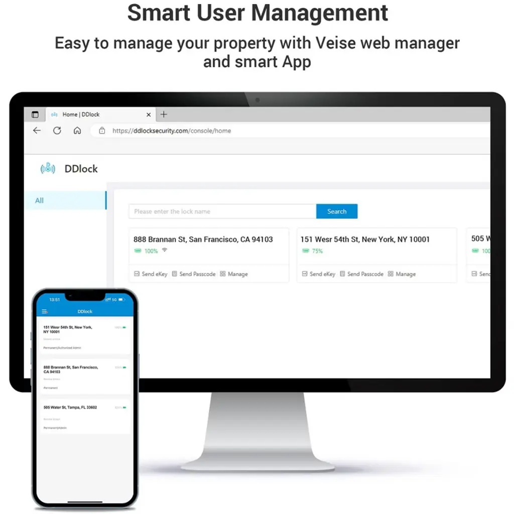 Upgrade your home security with this 7 - in - 1 smart door lock. Offering multiple access methods including fingerprint, app, web portal, fobs, code, eKey sharing, and mechanical key, it provides great convenience. The app and web portal control allow you to manage access remotely, generate eKeys, and view records for free. With a capacity for 50 fingerprints and 250+ user codes, you can share different types of codes with various users. It features enhanced security with auto - lock, privacy mode, and an anti - peeping keypad. Smart home integration enables voice control with Alexa and Google Home when paired with a separate gateway. Suitable for houses, apartments, offices, and hotels, it fits most US standard doors and can be installed easily with a screwdriver, bringing a new level of convenience and security to your life.