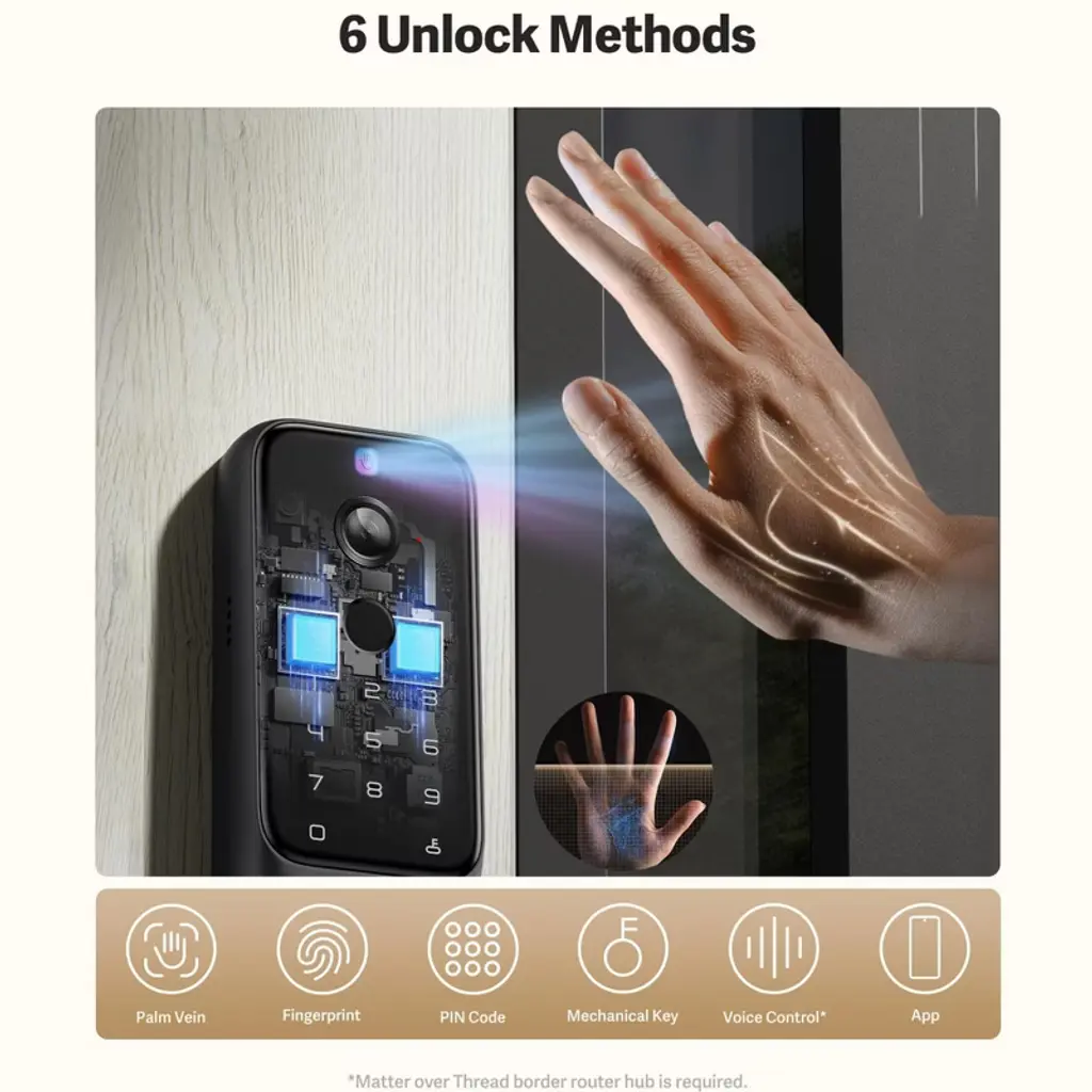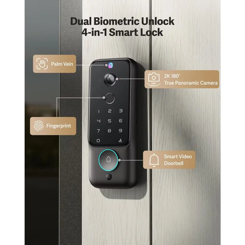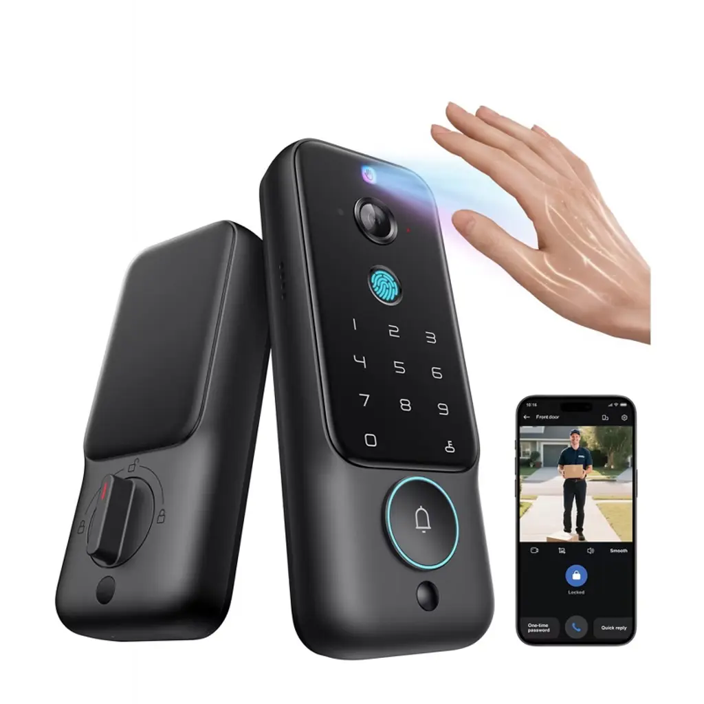 Enhance your home security with this state - of - the - art smart lock. It features a 2K ultra - wide 180° security camera and video doorbell, offering a panoramic view that reduces blind spots by 75% compared to standard models. Enjoy keyless entry with advanced palm vein or fingerprint recognition, ensuring fast and convenient access. There are also 6 access methods available, such as PIN code, app control, and voice assistant support, making it suitable for various users. The device processes all data locally with triple - layer encryption, safeguarding your privacy. Installation is a breeze, taking only 15 minutes with a screwdriver. Whether you have a multi - generational family, guests, or run an Airbnb, this smart lock provides a reliable and user - friendly home security solution.