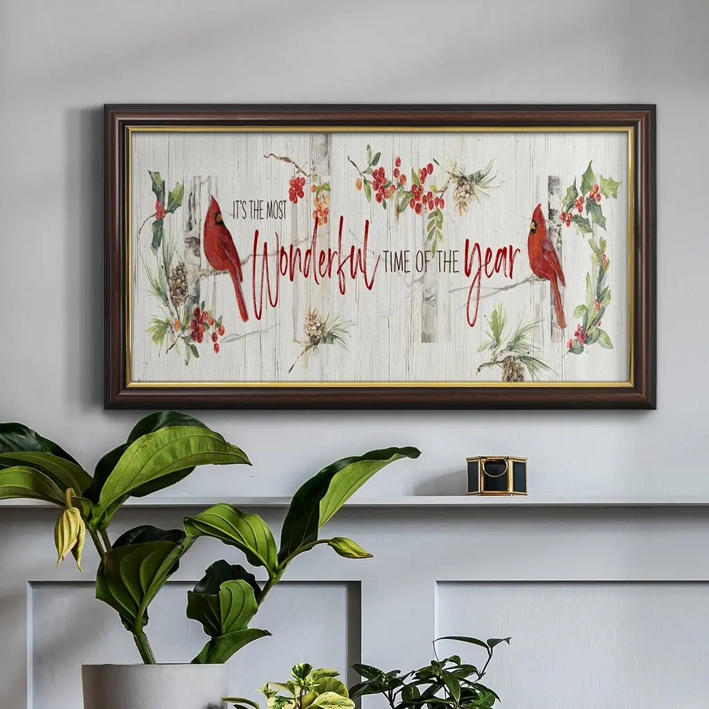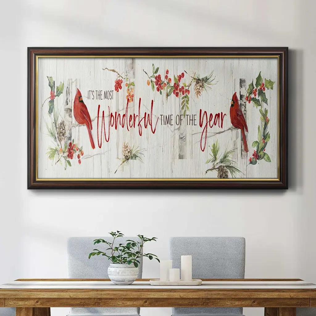 It's The Most Wonderful Premium Framed Canvas- Ready to Hang A Premium Framed Canvas created to last. Framed in distressed wood and available in an array of sizes and colors Featuring a beveled a solid wood stretcher bar, each piece comes ready to hand 3 SIZES AVAILABLE 21''X37'' - Overall Size 25''X45'' - Overall Size 29''x53'' - Overall Size Each piece is made to order. Each piece comes with hanging hardware. Made in the USA Ready to Hang Giclee Paper Print Acrylic Glass Beveled Matt Board