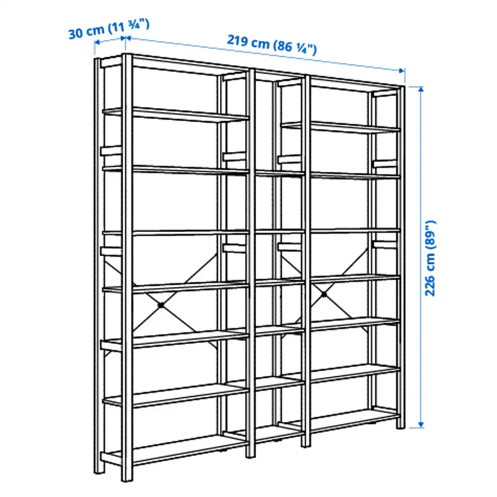 IVAR 3 section shelving unit - pine 86 1/4x11 3/4x89 ". Untreated solid pine is a durable natural material that can be painted, oiled or stained according to preference. You can personalize the furniture even more by staining or painting it your favorite color.