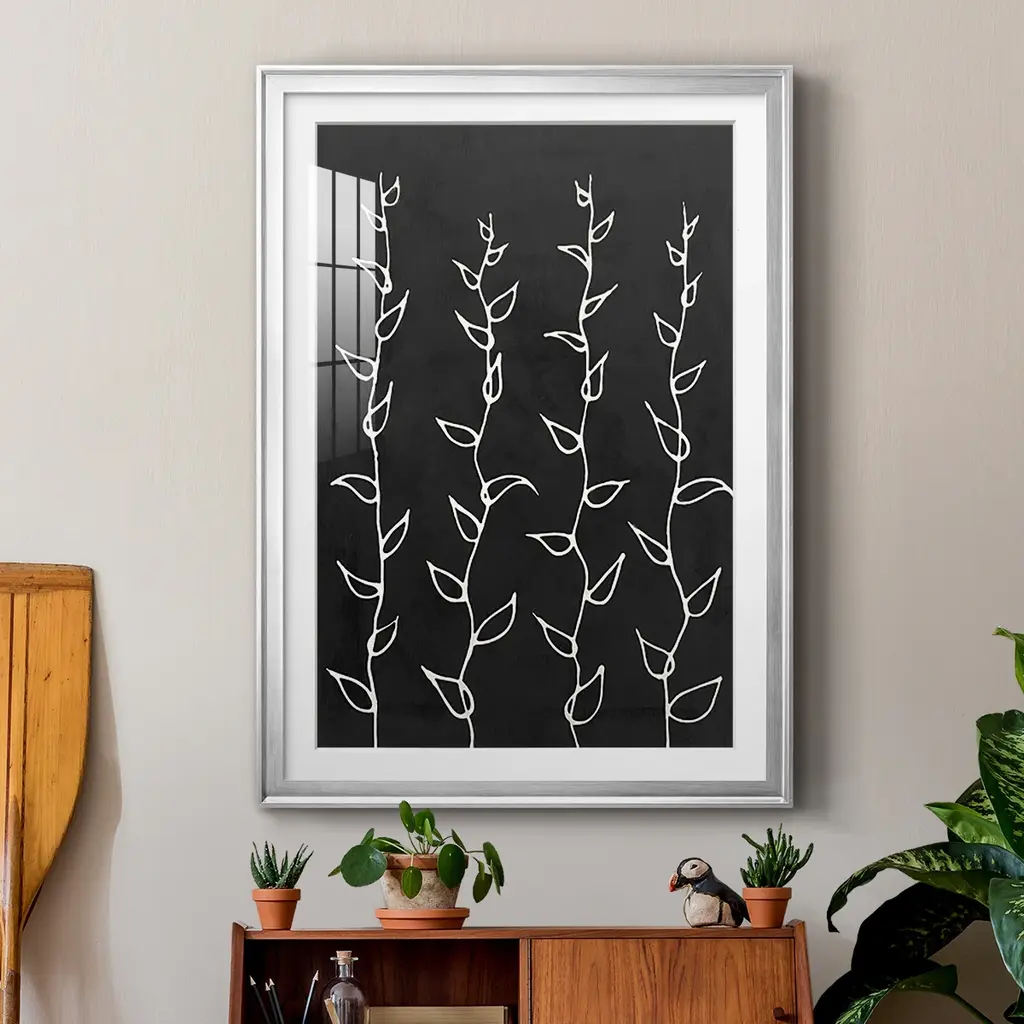 Ivory Vines I Premium Framed Print - Ready to Hang A Premium Framed Print created to last. Framed in distressed wood and available in an array of sizes and colors Featuring a beveled a solid wood stretcher bar, each piece comes ready to hand 4 SIZES AVAILABLE 30.5''X42.5'' - Overall Size 26.5'X36.5'' - Overall Size 22.5''x30.5'' - Overall Size 18.5''x24.5'' - Overall Size Each piece is made to order. Each piece comes with hanging hardware. Made in the USA Ready to Hang Giclee Paper Print Acrylic Glass Beveled Matt Board