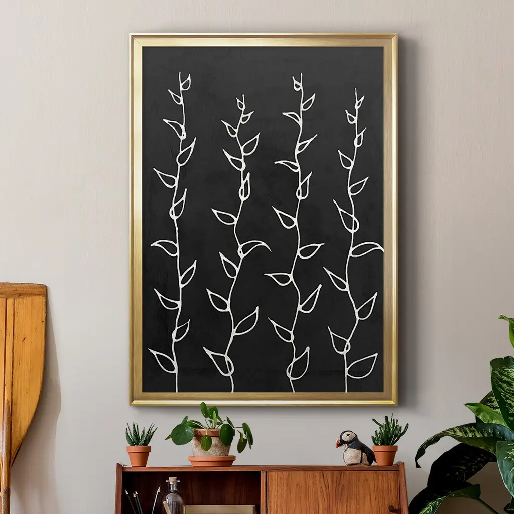 Ivory Vines I Premium Framed Print - Ready to Hang A Premium Framed Print created to last. Framed in distressed wood and available in an array of sizes and colors Featuring a beveled a solid wood stretcher bar, each piece comes ready to hand 4 SIZES AVAILABLE 30.5''X42.5'' - Overall Size 26.5'X36.5'' - Overall Size 22.5''x30.5'' - Overall Size 18.5''x24.5'' - Overall Size Each piece is made to order. Each piece comes with hanging hardware. Made in the USA Ready to Hang