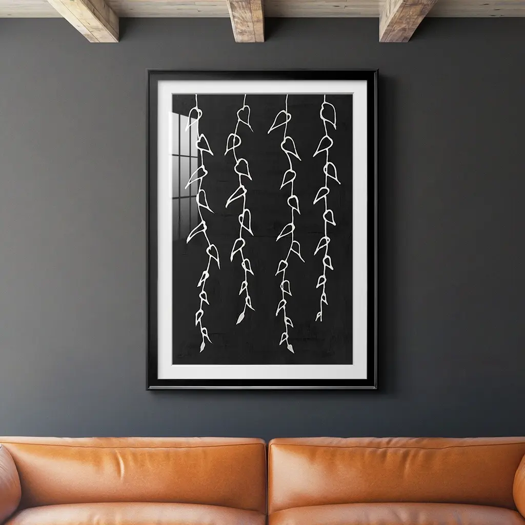 Ivory Vines II Premium Framed Print - Ready to Hang A Premium Framed Print created to last. Framed in distressed wood and available in an array of sizes and colors Featuring a beveled a solid wood stretcher bar, each piece comes ready to hand 4 SIZES AVAILABLE 30.5''X42.5'' - Overall Size 26.5'X36.5'' - Overall Size 22.5''x30.5'' - Overall Size 18.5''x24.5'' - Overall Size Each piece is made to order. Each piece comes with hanging hardware. Made in the USA Ready to Hang Giclee Paper Print Acrylic Glass Beveled Matt Board