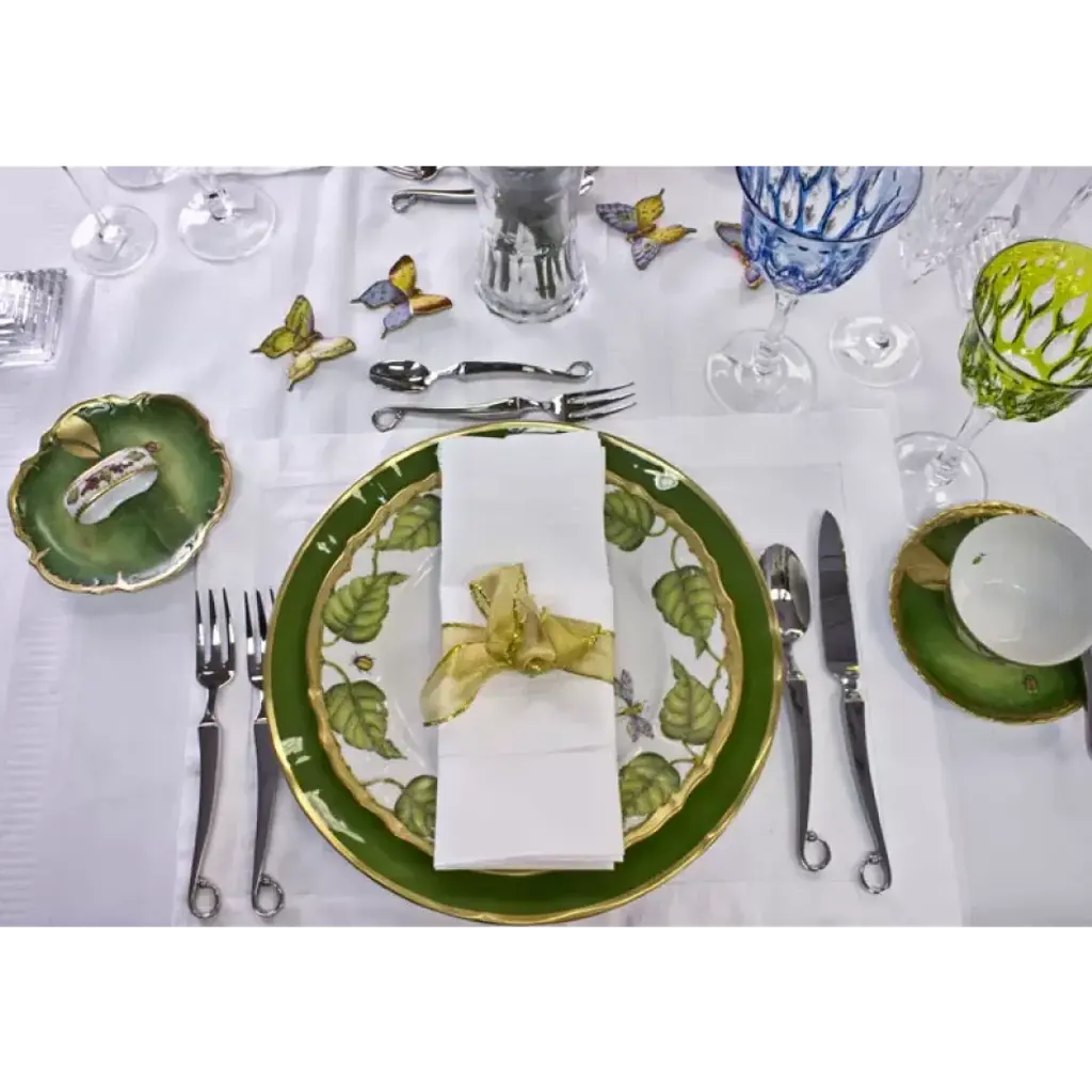 Ivy leaves twine around this dinnerware, while butterflies and dragonflies flutter about each dish. Five piece place setting includes dinner plate, salad plate, bread & butter plate, tea cup and saucer. Anna Weatherley’s designs are based on botanical sketches from the 18th century as well as Dutch still-life paintings. At home, we find her pieces look just as good on our tables as they do on our walls. Fashion designer, socialite, and artist Anna Weatherley's signature style of butterflies, flowers, and botanical drawings is brought by artists in her factory in Budapest, Hungary. There, they hand-paint and decorate each piece to create a unique work of art that brings beauty to your home all year.