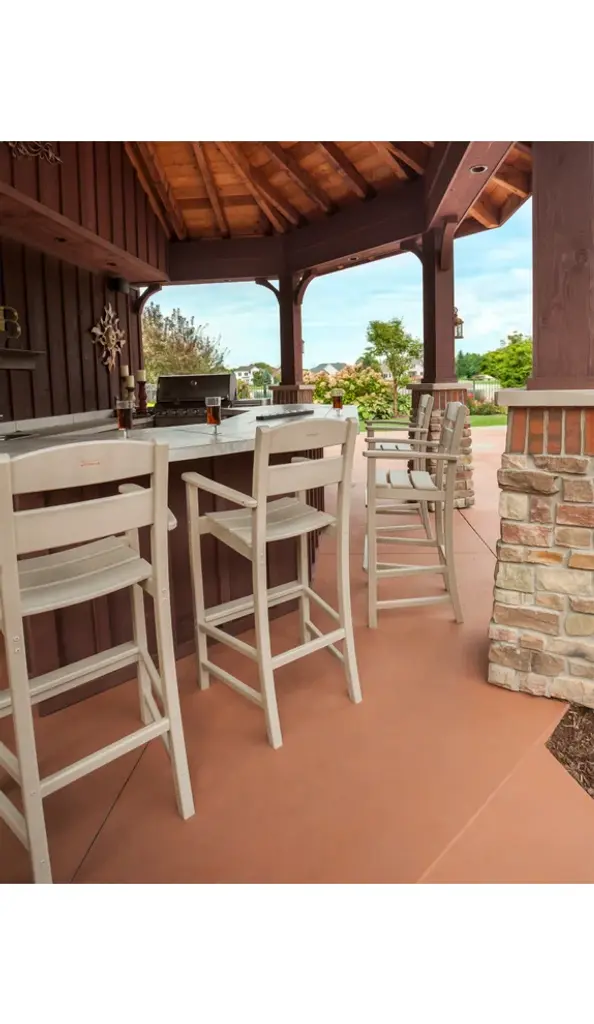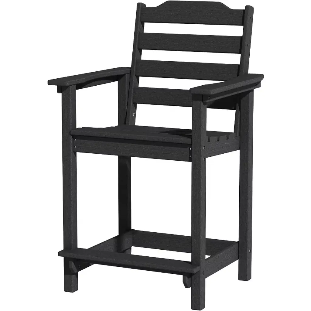 The Ivy Terrace Classics Bar Arm Chair doesn't just look good, it's eco-friendly. This bar arm chair is made of All-Weather HDPE lumber which contains mostly recycled content. All-Weather HDPE lumber has the great look of painted wood but requires no painting, staining, waterproofing, or similar maintenance. Assembled with solid dimensional lumber and Marine-grade quality hardware, the Bar Arm Chair can withstand most anything nature throws at it. All-Weather HDPE lumber will not splinter, crack, chip, or peel. Further, coloring runs throughout the UV-stabilized plastic lumber so there is no exterior finish to wear or scratch off. The Classics Bar Arm Chair is stain resistant and cleans easily with soap and water. Ivy Terrace furniture boasts a 20-year warranty and is proudly made in the USA. Some assembly required.Constructed of genuine POLYWOOD lumber, a proprietary blend of plastics which includes recycled milk jugs and detergent bottlesSolid, heavy-duty construction withstands most anything nature can throw at itUV protectant and color continuously throughout the HDPE material; requires no painting or waterproofingWill not splinter, crack, chip, peel, rot, or suffer from insect infestationMarine-grade quality hardware20-year residential warranty; 3-year commercial warrantyResists stains and is easy to clean with soap and waterSome assembly requiredMade in the USA