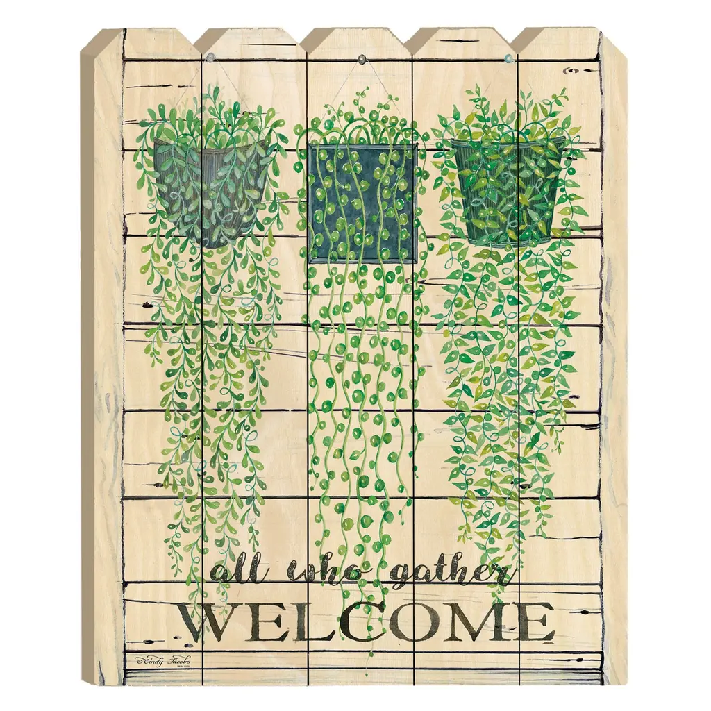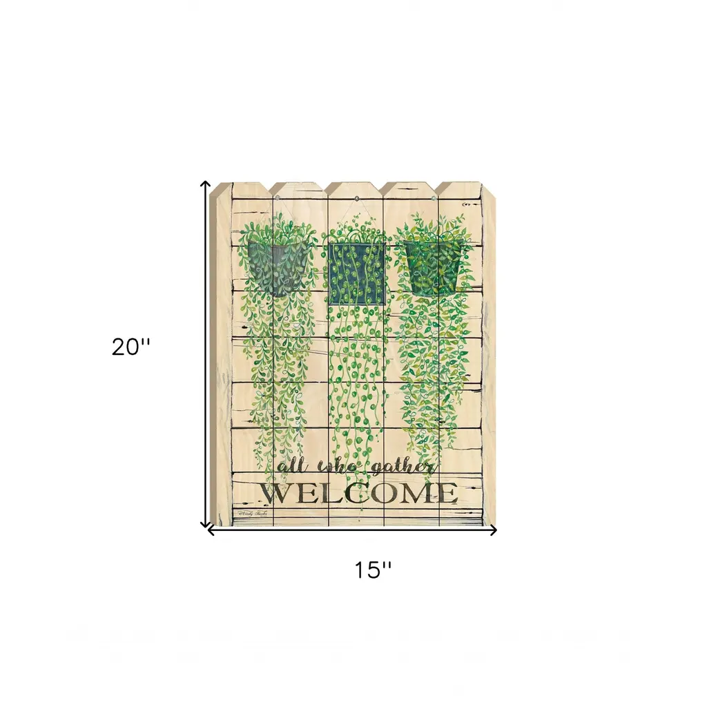 This ivy welcome unframed print wall art will add a beautiful decorative accent to your decor. This print is a visual artistic expression that allows you to decorate your space in style. Reproduced for you on wood, this hanging decorative accent will be a trendy and fashionable way to dress your walls in a rustic and modern farmhouse vibe. Hang on your wall to add some up to date fashion and decoration. Instantly liven up your space with this art that brings color and dimension to your walls. 20" H x 15" W x 1" D