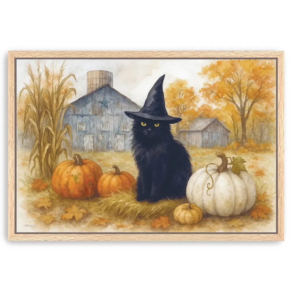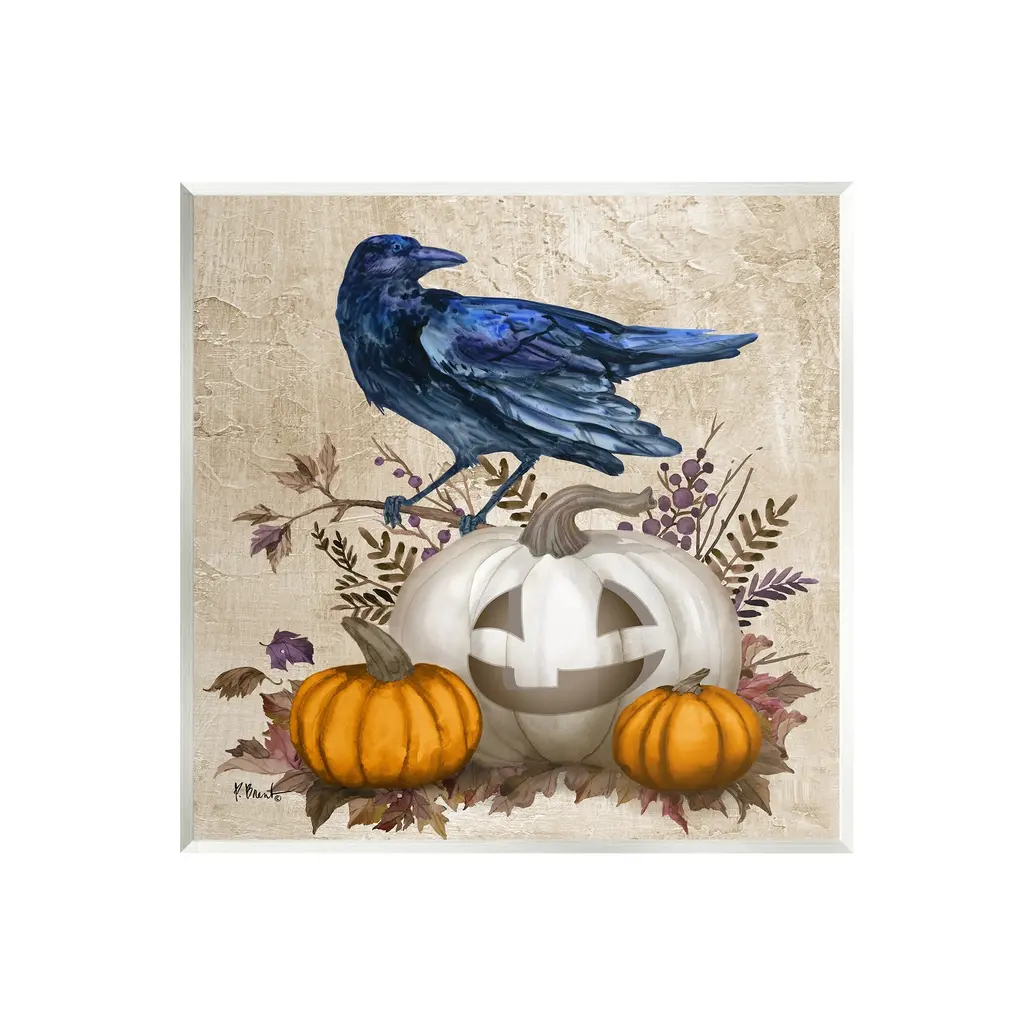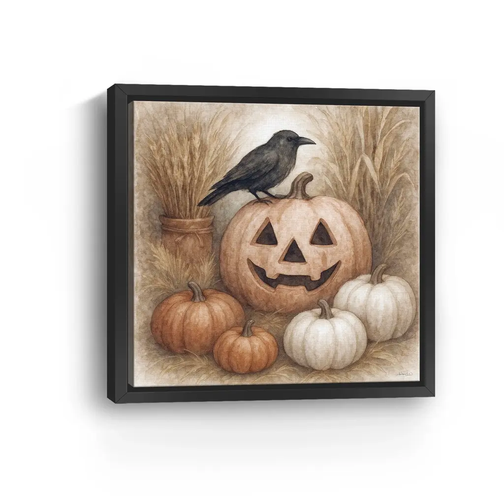 This gentle Halloween composition features a carved pumpkin surrounded by dried grasses and perched by a mysterious raven. The palette of ivory, terracotta, and dusty taupe evokes a nostalgic autumn mood. Our Gallery Wrap Canvas Prints are proudly assembled with high quality materials in California, USA. Each piece is printed on a thick, archival grade canvas using Giclee technology. It is then hand-stretched by our experienced artisans over solid wood bars, which will not warp over time. The final product is a piece personally crafted for you to confidently display on your wall. Care and Assembly: Ensure that the location of your piece has little to no exposure to heat, sunlight, and moisture. Wipe clean, only if needed. Each piece includes hanging hardware to hang on your wall horizontally.