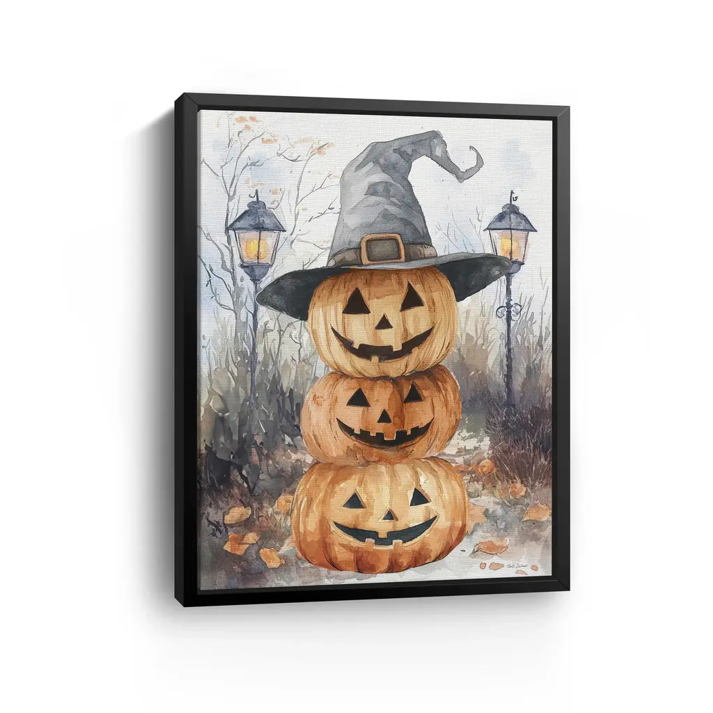 Jack-O-Lantern Stack Canvas Giclee - Framed / Black / 18x24