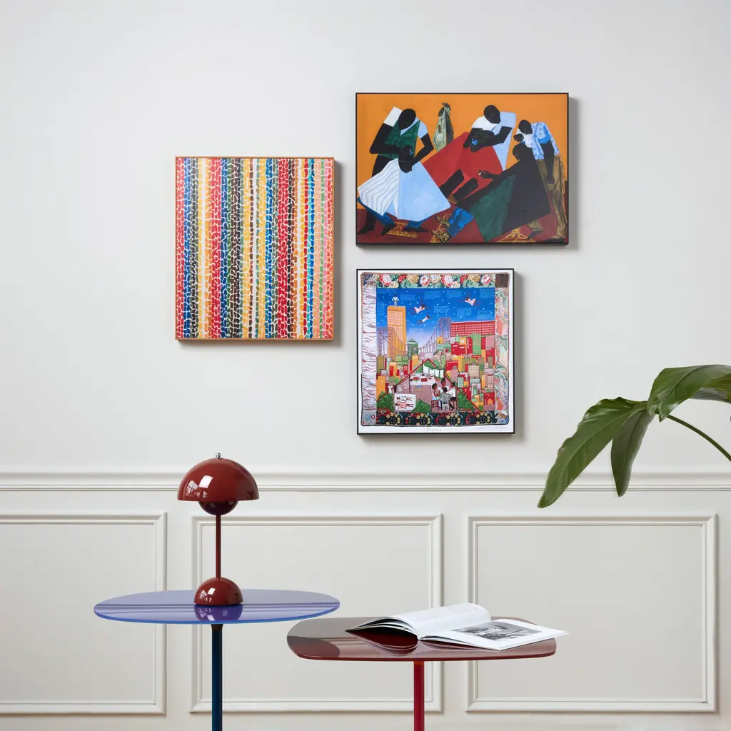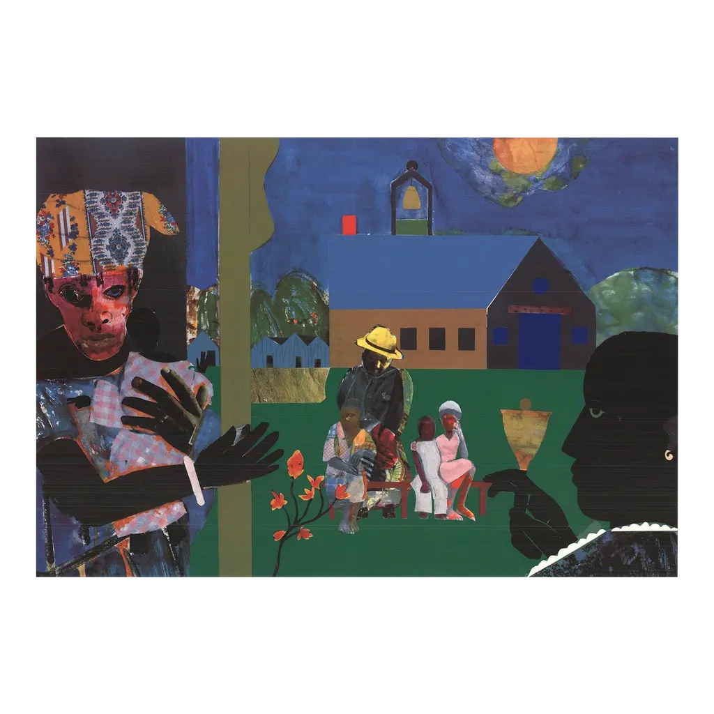 This print features a reproduction of Barber Shop (1946) by Jacob Lawrence, an artist with work in MoMA's collection. It’s mounted and laminated for protection from dust and UV rays, and floated in a hand-stained, black, 2"-deep frame made from ash wood grown in sustainable forests. Hanging kit included.