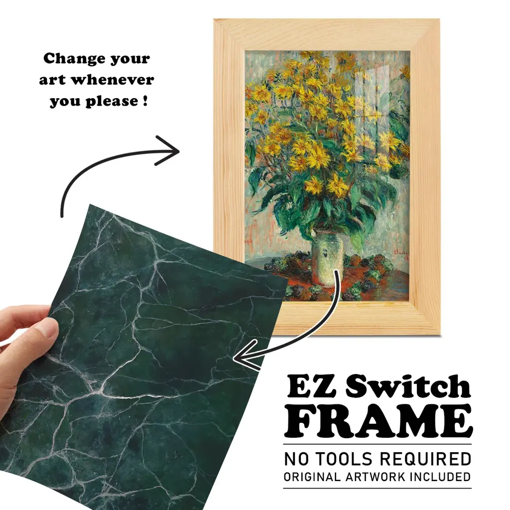 Jade Marble II -EZ SWITCH Framed Print w/glass-Cherry Red A delightful, framed print. Featuring a solid wood frame with real wood glass. This premium print is giclee quality. In addition, every frame features a removable back and table top stand. This allows you to change your art in the future or to just stand the art on a table for a new look. We are sure you'll enjoy our new series of EZ SWITCH Framed Art. Solid Wood Frame Real Glass Removable / Replaceable Art Built in Tabletop Stand Sizes range from 4x6 up to 12x15 - buy just one or pair them up as sets as you see fit.