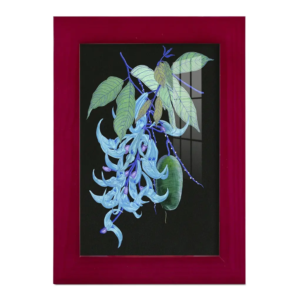 Jade Vine II -EZ SWITCH Framed Print w/glass-Cherry Red A delightful, framed print. Featuring a solid wood frame with real wood glass. This premium print is giclee quality. In addition, every frame features a removable back and table top stand. This allows you to change your art in the future or to just stand the art on a table for a new look. We are sure you'll enjoy our new series of EZ SWITCH Framed Art. Solid Wood Frame Real Glass Removable / Replaceable Art Built in Tabletop Stand Sizes range from 4x6 up to 12x15 - buy just one or pair them up as sets as you see fit.