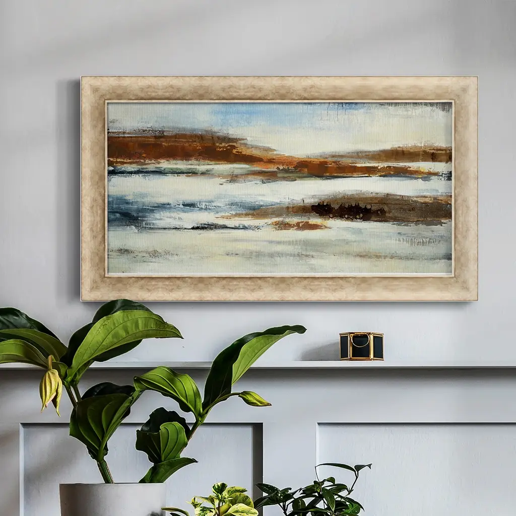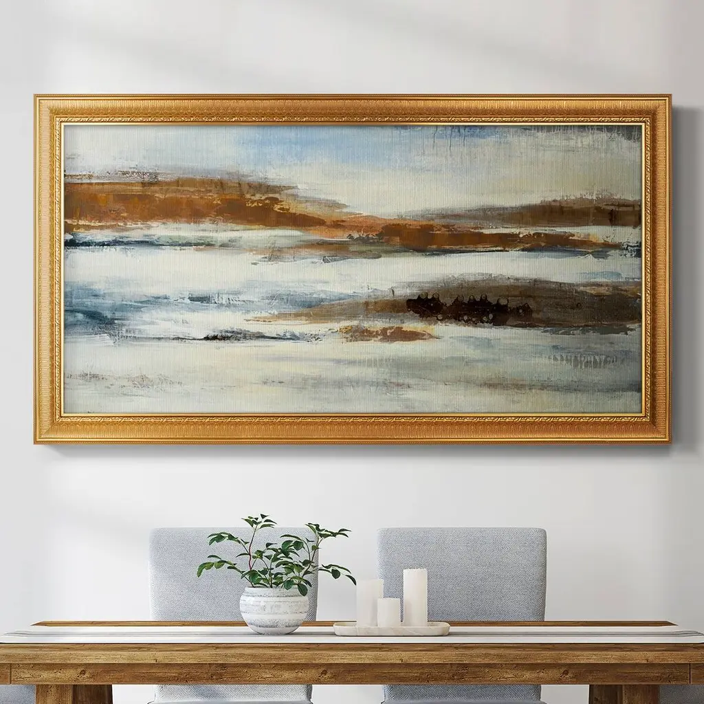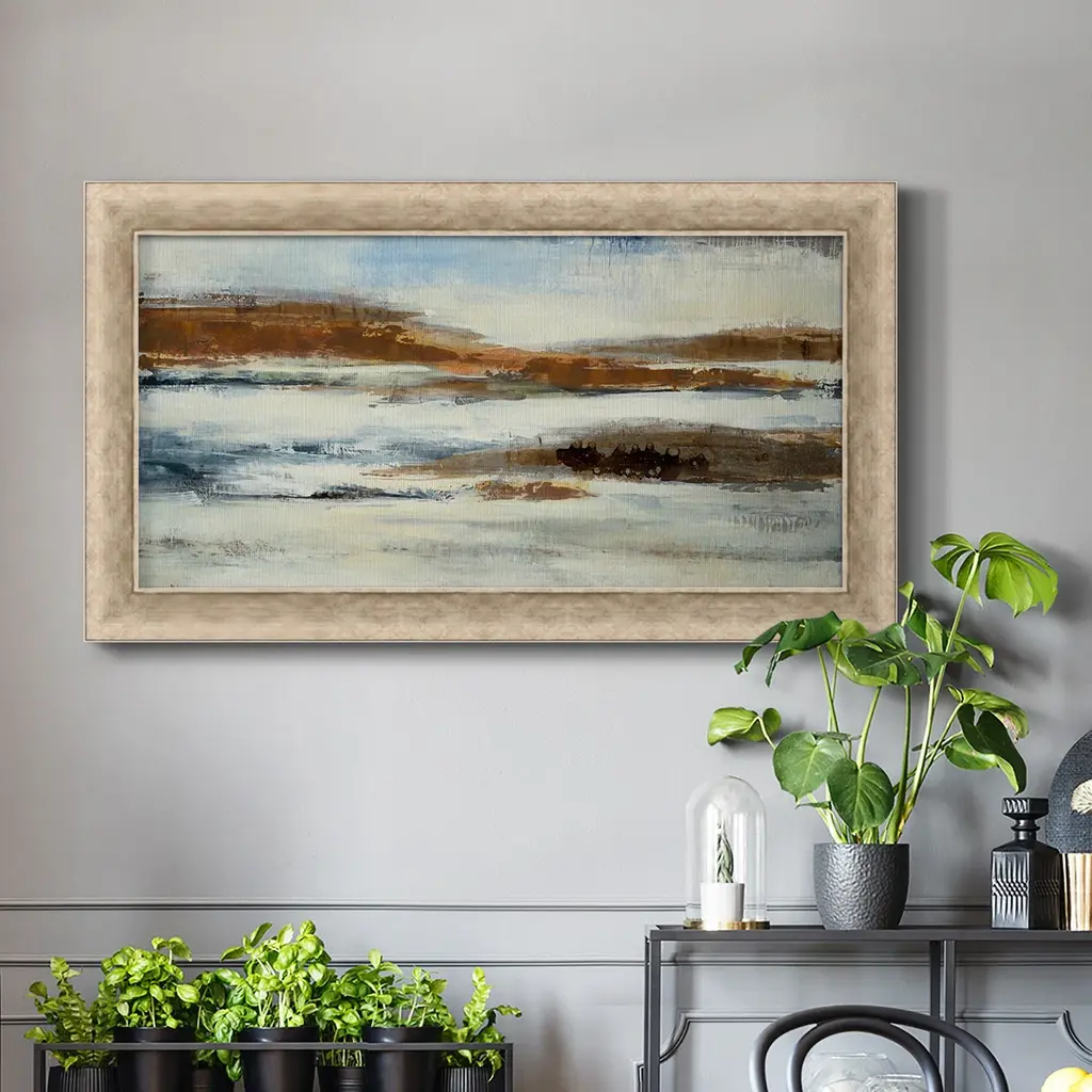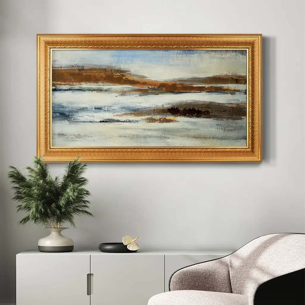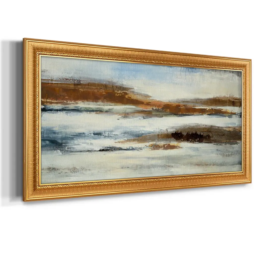 Jagged Coast Premium Framed Canvas- Ready to Hang A Premium Framed Canvas created to last. Framed in distressed wood and available in an array of sizes and colors Featuring a beveled a solid wood stretcher bar, each piece comes ready to hand 3 SIZES AVAILABLE 21''X37'' - Overall Size 25''X45'' - Overall Size 29''x53'' - Overall Size Each piece is made to order. Each piece comes with hanging hardware. Made in the USA Ready to Hang Giclee Paper Print Acrylic Glass Beveled Matt Board