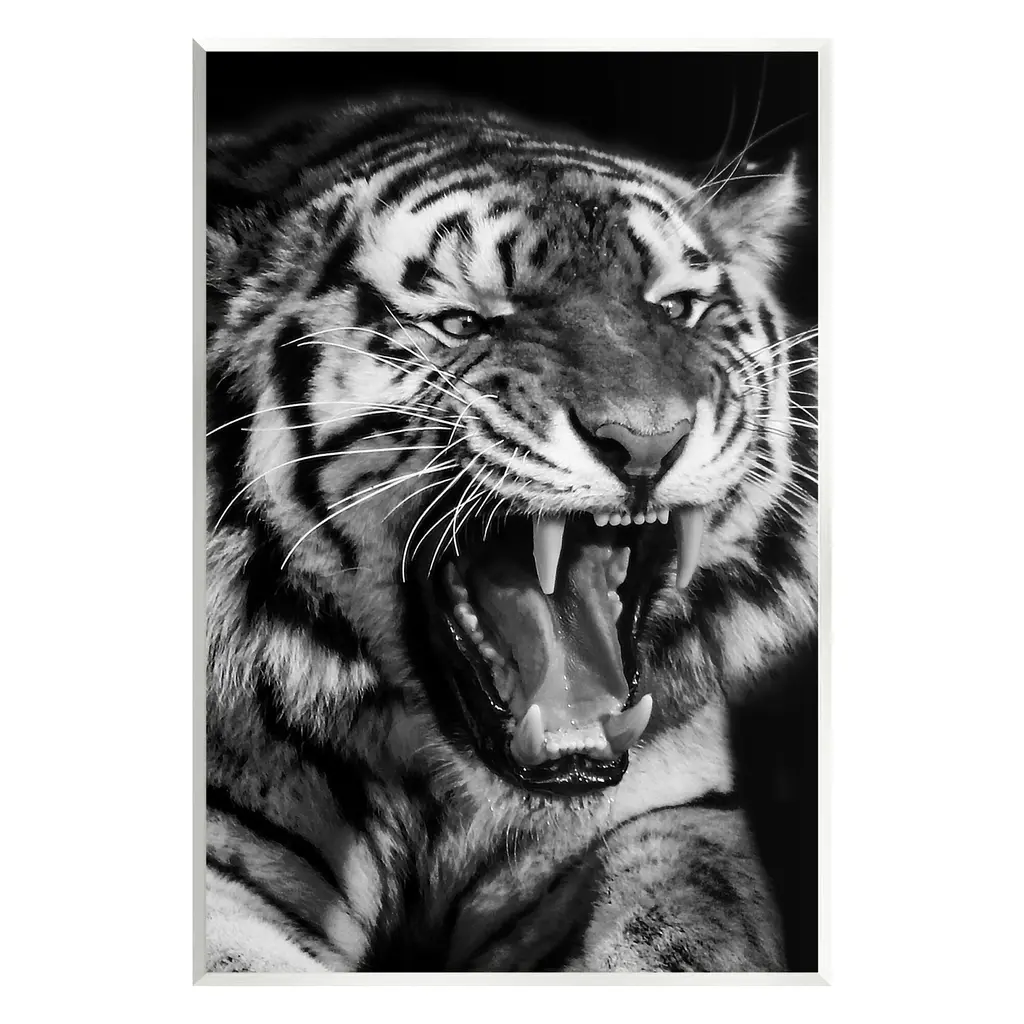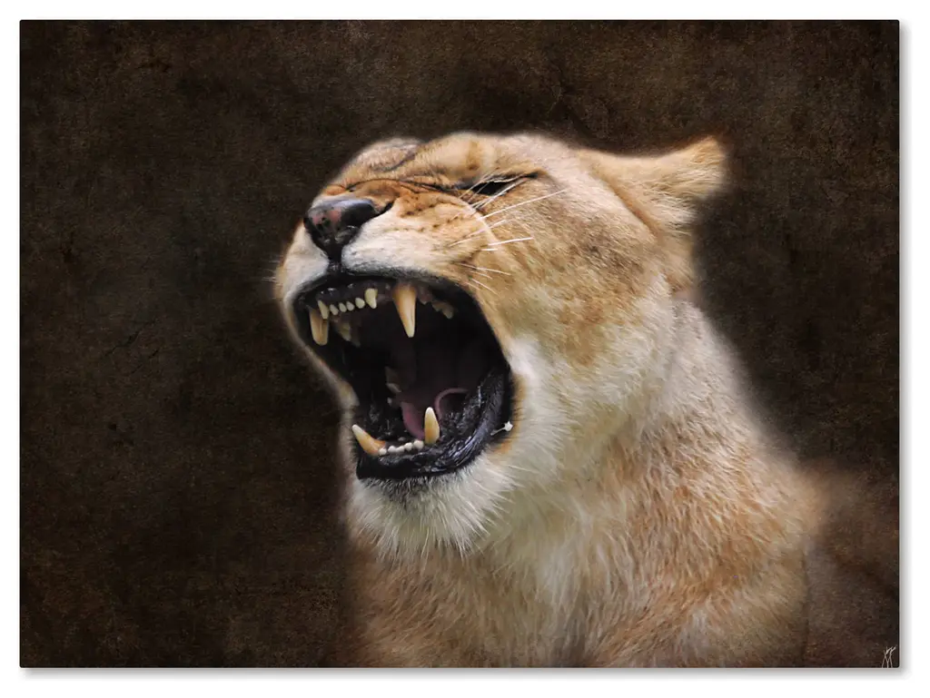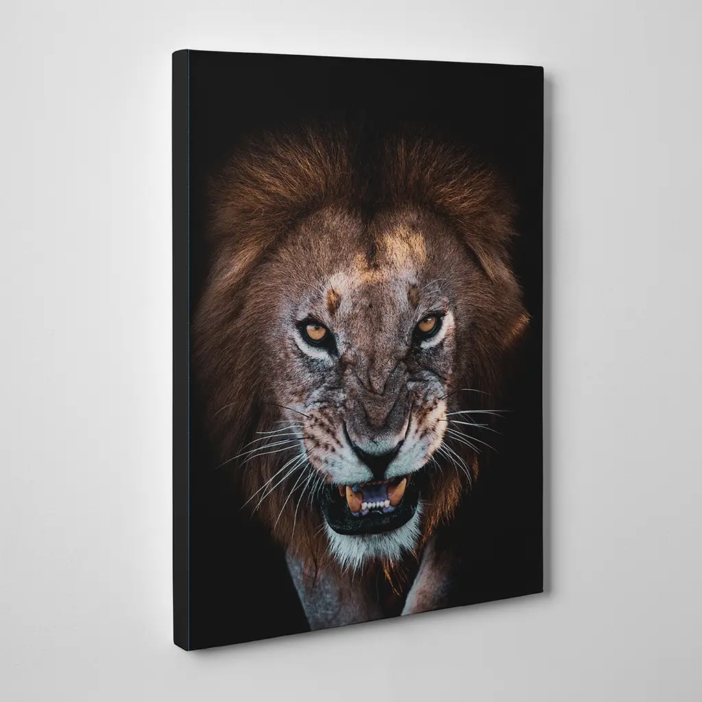 Artist: Jai JohnsonSubject: AnimalsStyle: Modern & ContemporaryProduct Type: Gallery-Wrapped Canvas ArtMade in USAThis ready to hang, gallery-wrapped art piece features a lion roaring in the center of a black frame.Jai Johnson is a photographic artist living in West Tennessee who loves to spend her days in nature capturing life's most serene and peaceful moments, whether it be in landscapes, birds and wildlife, or the beauty of a simple flower. While her favorite subjects usually feature fur or feathers, rural country scenes and simple things also capture her photographic eye when she's behind the lens. When she's not out in nature capturing wildlife on camera, Jai spends her time in her studio transforming many of her original photographs into unique art by pairing them with hand-painted textures to create luxurious imagery filled with warmth, light, and color.Giclee (jee-clay) is an advanced printmaking process for creating high quality fine art reproductions. The attainable excellence that Giclee printmaking affords makes the reproduction virtually indistinguishable from the original piece. The result is wide acceptance of Giclee by galleries, museums, and private collectors. Gallery wrap is a method of stretching an artist's canvas so that the canvas wraps around the sides and is secured a hidden, wooden frame. This method of stretching and preparing a canvas allows for a frameless presentation of the finished painting.