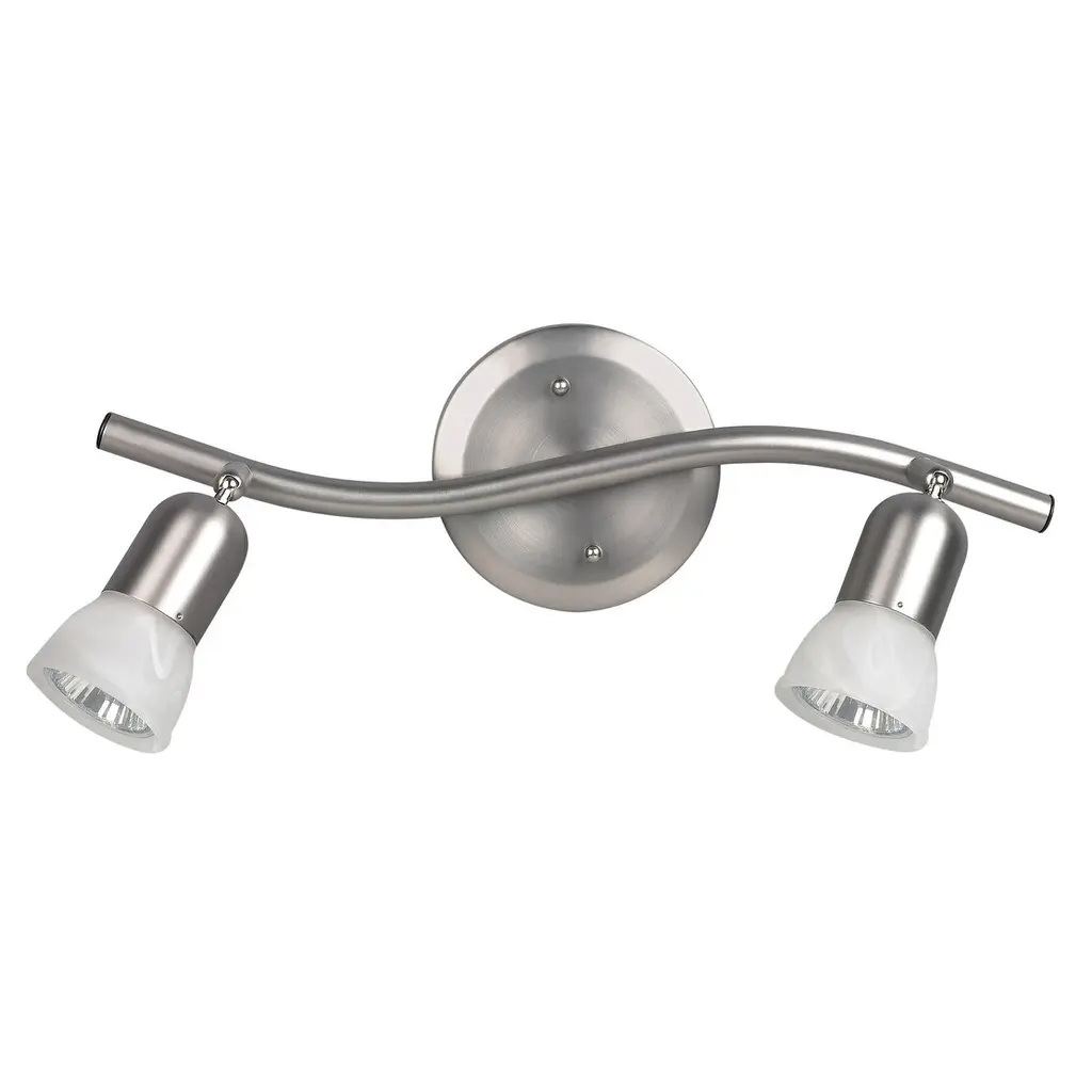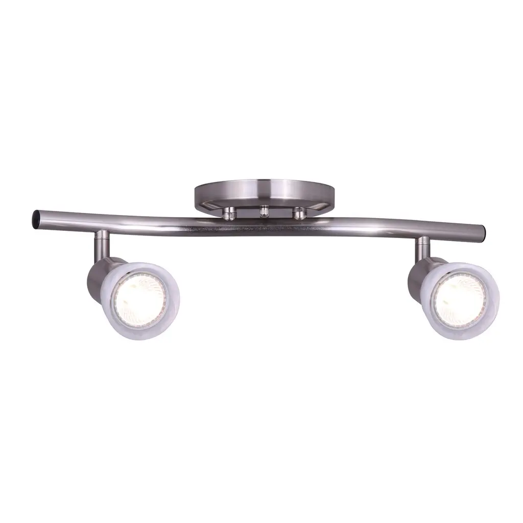 Enhance your home lighting with the James 2-Light Track Lighting Fixture, a stylish and functional addition to modern and industrial interiors. Featuring a brushed pewter finish and adjustable alabaster glass shades, this ceiling-mounted track light allows you to customize illumination to fit your needs. Each of the two adjustable track heads can be directed to highlight artwork, brighten workspaces, or provide ambient lighting in kitchens, living rooms, and hallways. Measuring 15 inches wide, this fixture provides ample lighting coverage while maintaining a sleek and contemporary design. Installation is quick and hassle-free, with all necessary mounting hardware included. Compatible with two 50W GU10 bulbs (not included), this versatile lighting fixture offers customizable brightness and directional lighting, making it a perfect choice for accent and task lighting in any space.Elegant and Modern Design: The James 2-light track lighting fixture features a brushed pewter finish with alabaster glass shades blending industrial edge with modern elegance for a versatile lighting solution.Adjustable Track Heads for Custom Lighting: Each of the two alabaster glass shades can be adjusted to direct light exactly where needed making it ideal for highlighting artwork illuminating workspaces or accenting a room.Compact and Functional Size: Measuring 15 inches wide and 7.13 inches high this track light is perfect for kitchens living rooms hallways and other interior spaces that require bright adjustable illumination.Easy Installation for Ceiling Mounting: Designed for quick setup this track light includes all necessary mounting hardware allowing for a hassle free installation process in any home or office setting.Compatible with Standard GU10 Bulbs: Supports two 50W GU10 bulbs not included giving you the flexibility to customize brightness and color temperature based on your preference and lighting needs.