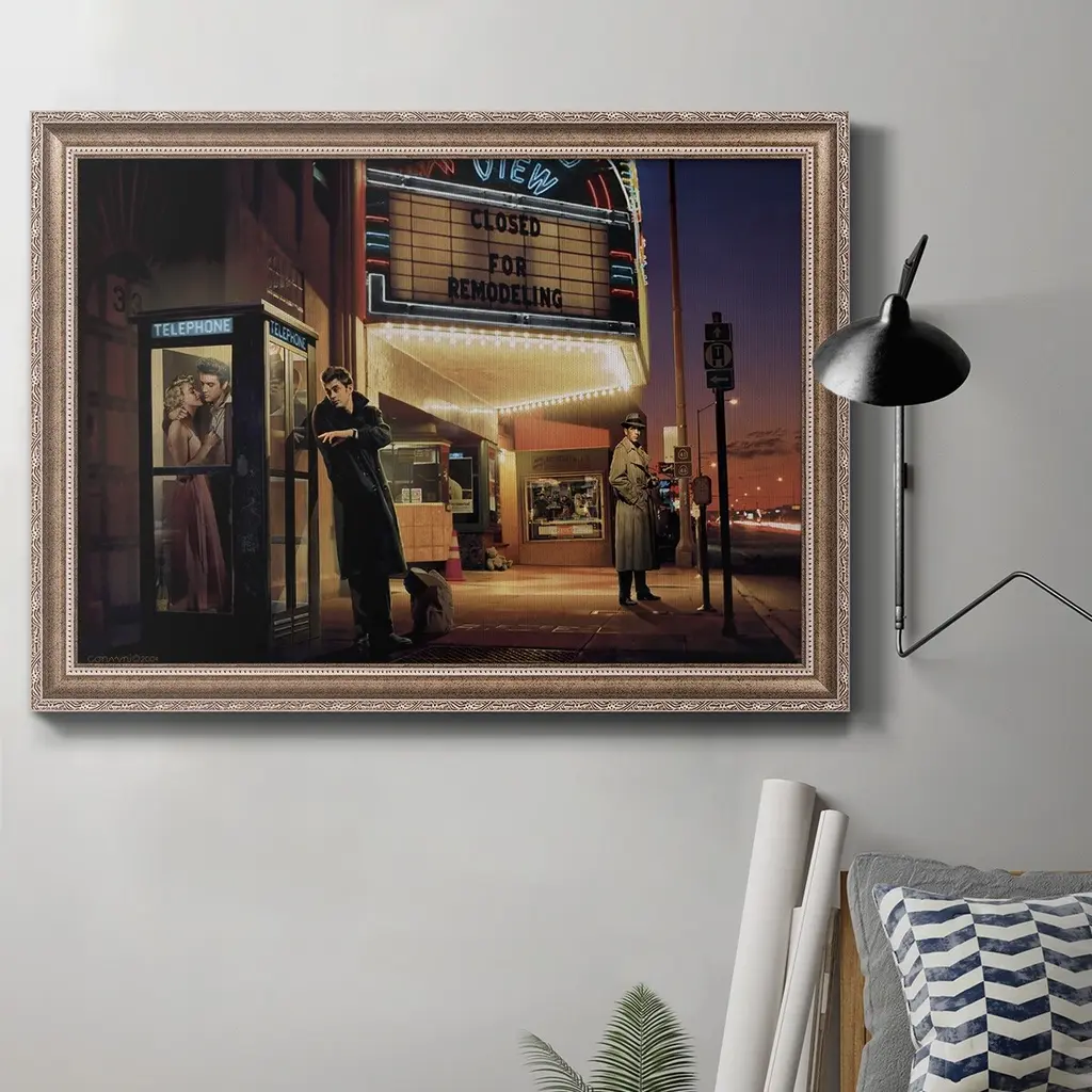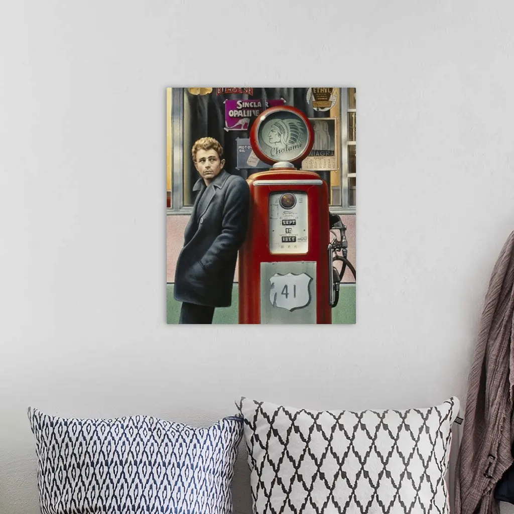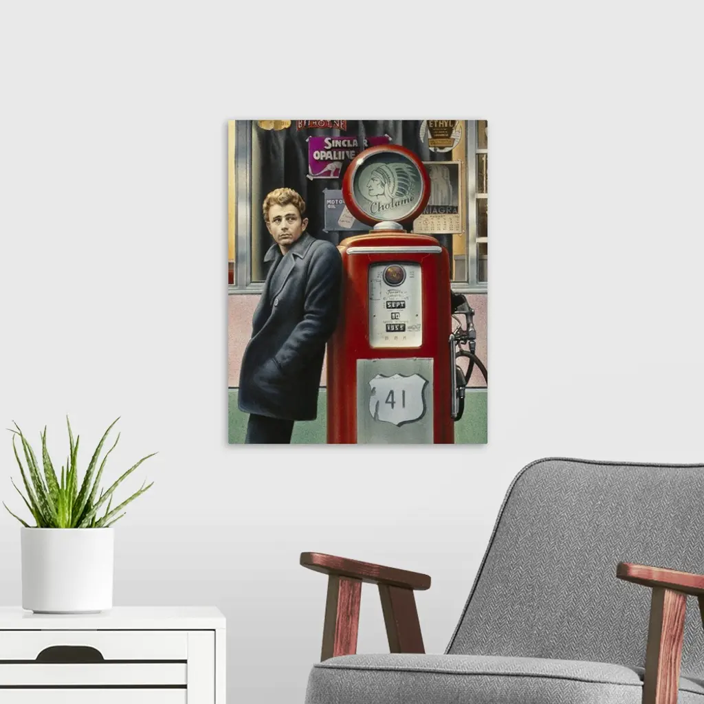 Contemporary artwork of fantasy setting "Norma Jean's Roadside Diner" featuring a vintage elements and iconic James Dean.
