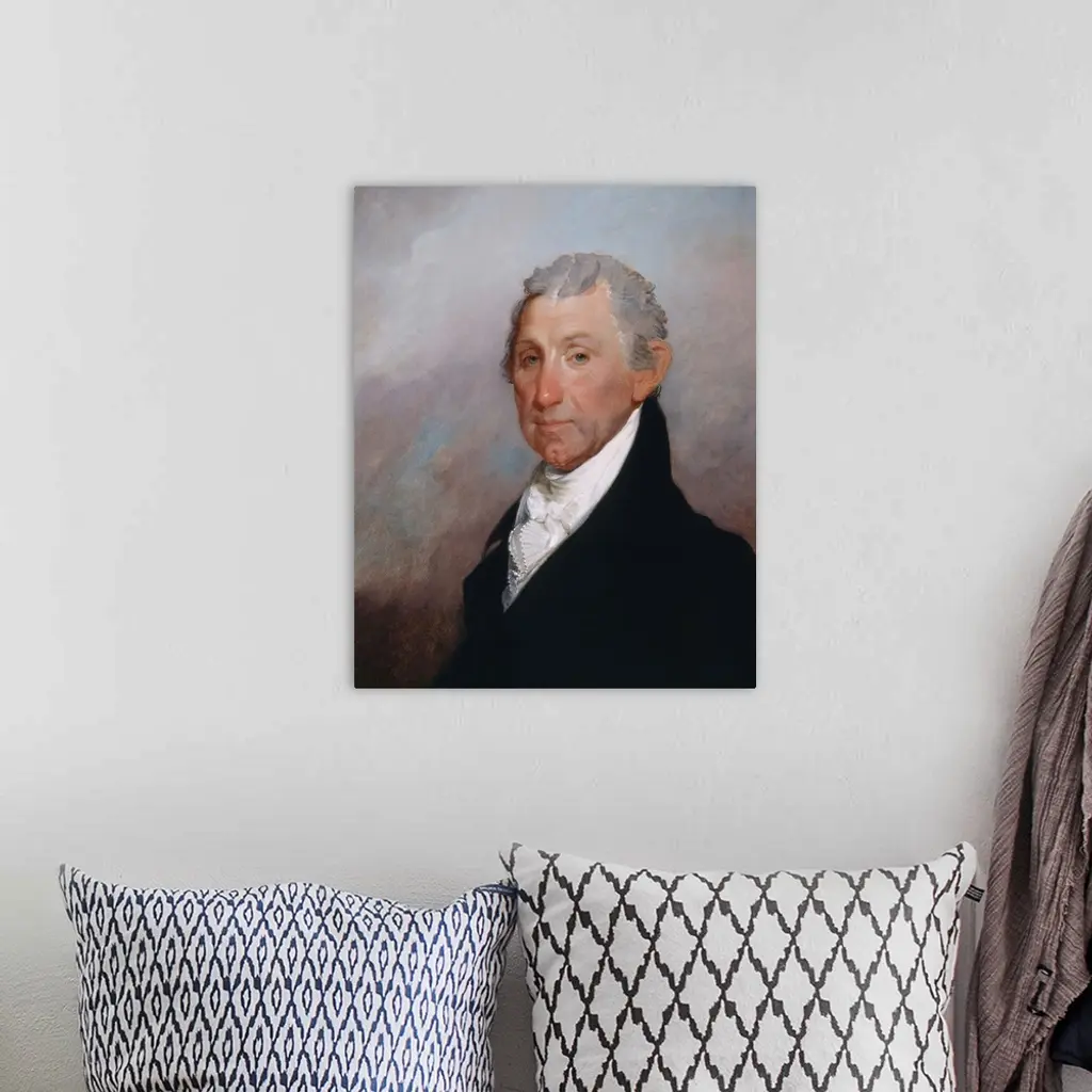 James Monroe, by Gilbert Stuart, 1817, American painting, oil on canvas. Colonel George Gibbs, Rhode Island, commissioned Stuart to paint five American Presidents in the 1820s. This portrait is a replica of one done from life in 1817, only set against a p