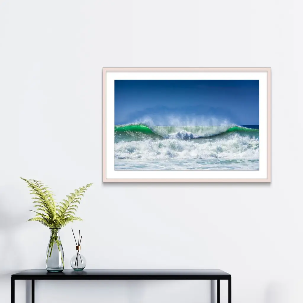 Seen first at One Kings Lane: This dynamic image from James Ogilvy captures a rolling wave. Printed on high-quality paper, floated on a white mat, and beautifully framed, this piece arrives ready to hang.A Scotland native, James Ogilvy's favorite time is the magical period just before and after dawn, when only birds are awake, and there are no sounds from the modern world. It encourages an almost meditational state of mind with intense awareness of even the smallest changes in light and atmosphere. He is particularly drawn to bodies of water: they act as a huge reflector of a changing sky, as a generator and attractor of mist and fog, and of course as a magnet for birds. Ogilvy's ultimate objective is to create a unique record of a still space that can provide a kind of spiritual refreshment whenever one looks at it.