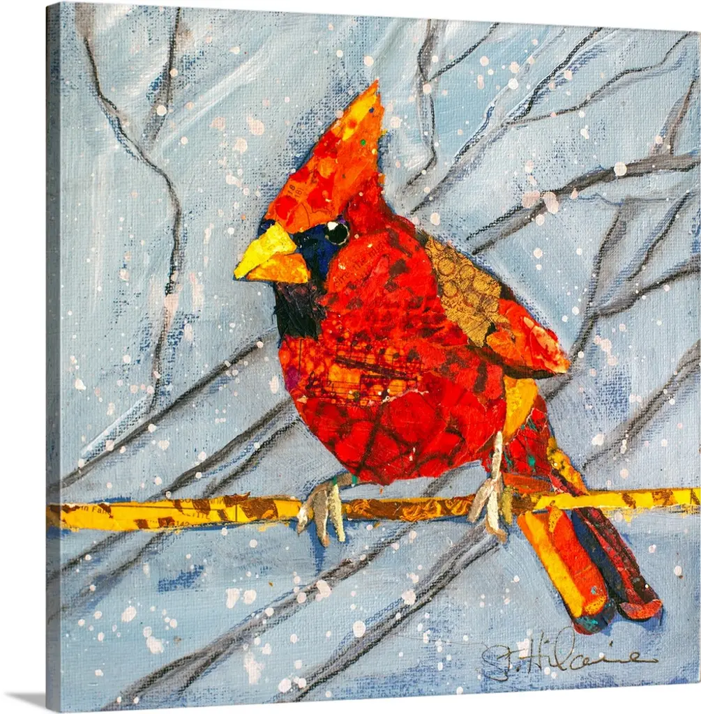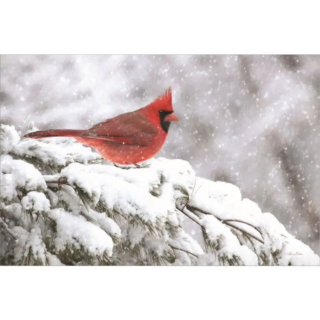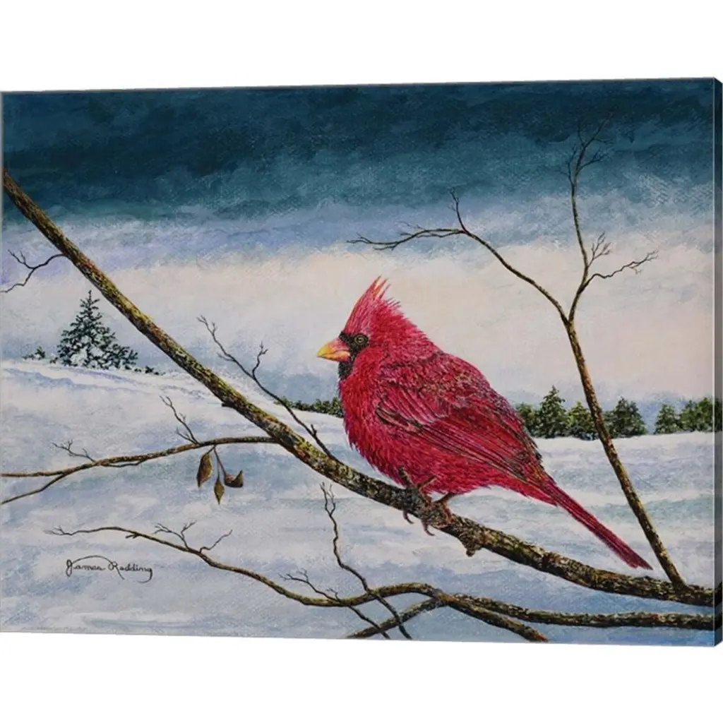 Cardinal In A Pastel Sky by James Redding is a high quality piece of canvas artwork. The finished size of this piece is 20" X 16", and it has a depth 0.75". There is a UV protective coating over the entire image, and it is ready to hang on your wall with no hardware required.