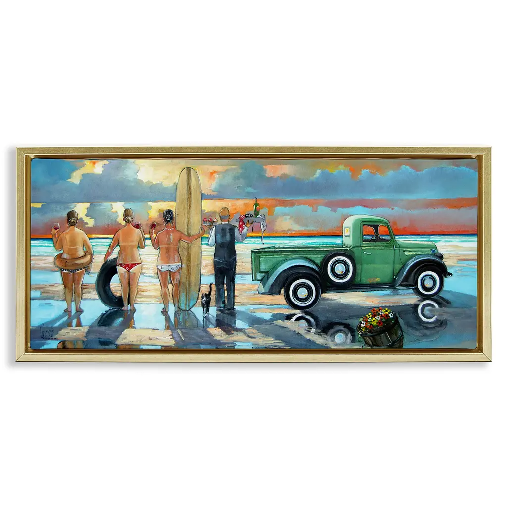 Beach Ride II by James Wiens is a high quality piece of canvas artwork. The finished size of this piece is 24" X 16", and it has a depth 1.5" with winter gray painted sides. There is a UV protective coating over the entire image, and it is ready to hang on your wall with no hardware required. 100% Satisfaction Guaranteed.