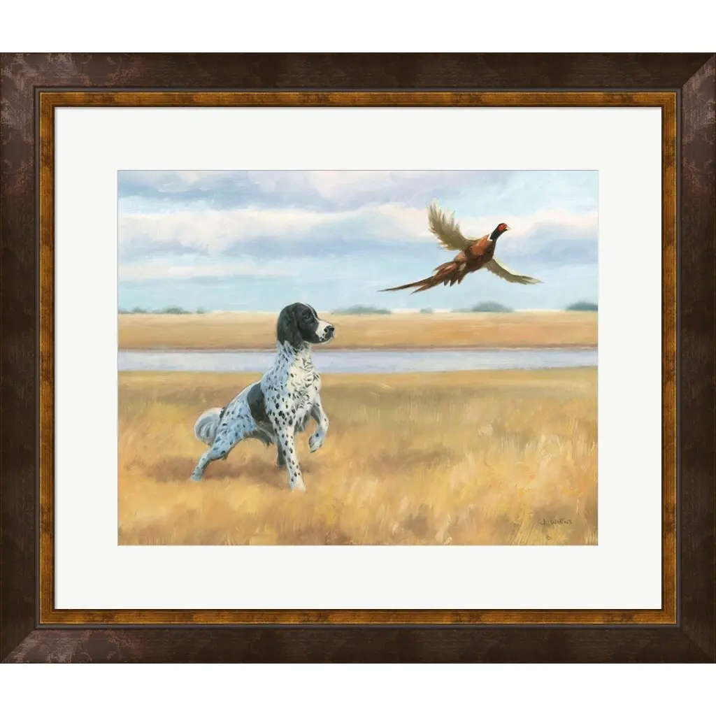 On Point by the River by James Wiens is a high quality piece of framed artwork. The finished size of this piece is 26.5" X 22.5". It has a Bronze Textured Mocha Brown with Bronze Inner Edge frame, is single matted and finished with high quality Acrylic Plexiglass. 100% Satisfaction Guaranteed.