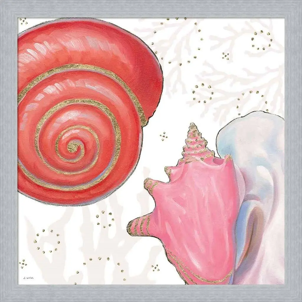 Shimmering Shells IV by James Wiens is a high quality piece of framed artwork. The finished size of this piece is 17.5" X 17.5". It has a Slim Solid Platinum Silver frame and is finished with high quality Acrylic Plexiglass. 100% Satisfaction Guaranteed.