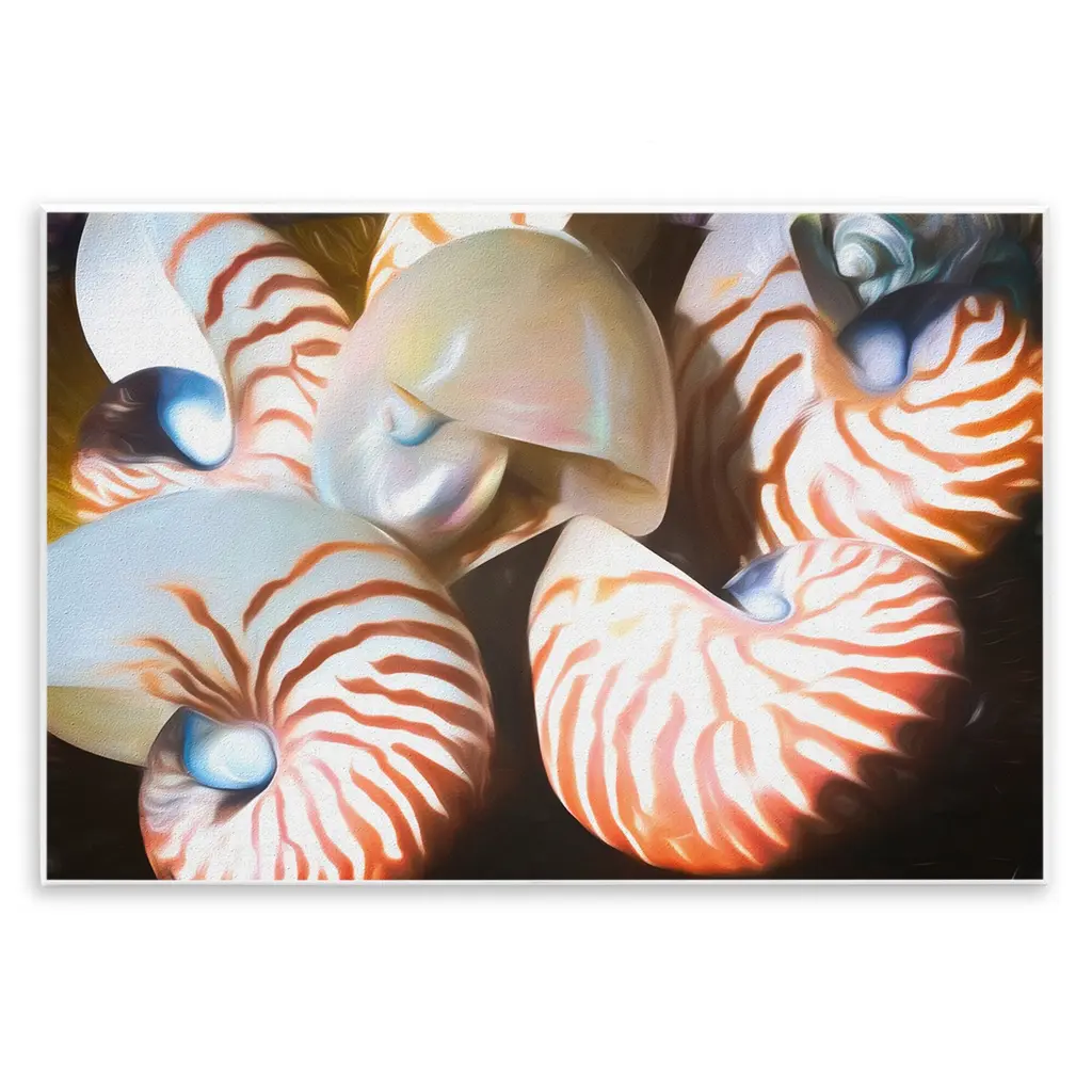 Shimmering Shells VI by James Wiens is a high quality piece of framed artwork. The finished size of this piece is 17.5" X 17.5". It has a Slim Solid Platinum Silver frame and is finished with high quality Acrylic Plexiglass. 100% Satisfaction Guaranteed.