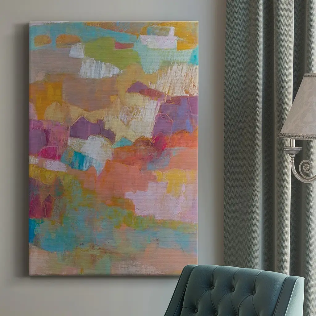 Soft Hues by James Wiens is a high quality piece of canvas artwork. The finished size of this piece is 35.5" X 28", and it has a depth 1.5". There is a UV protective coating over the entire image, and it is ready to hang on your wall with no hardware required. 100% Satisfaction Guaranteed.