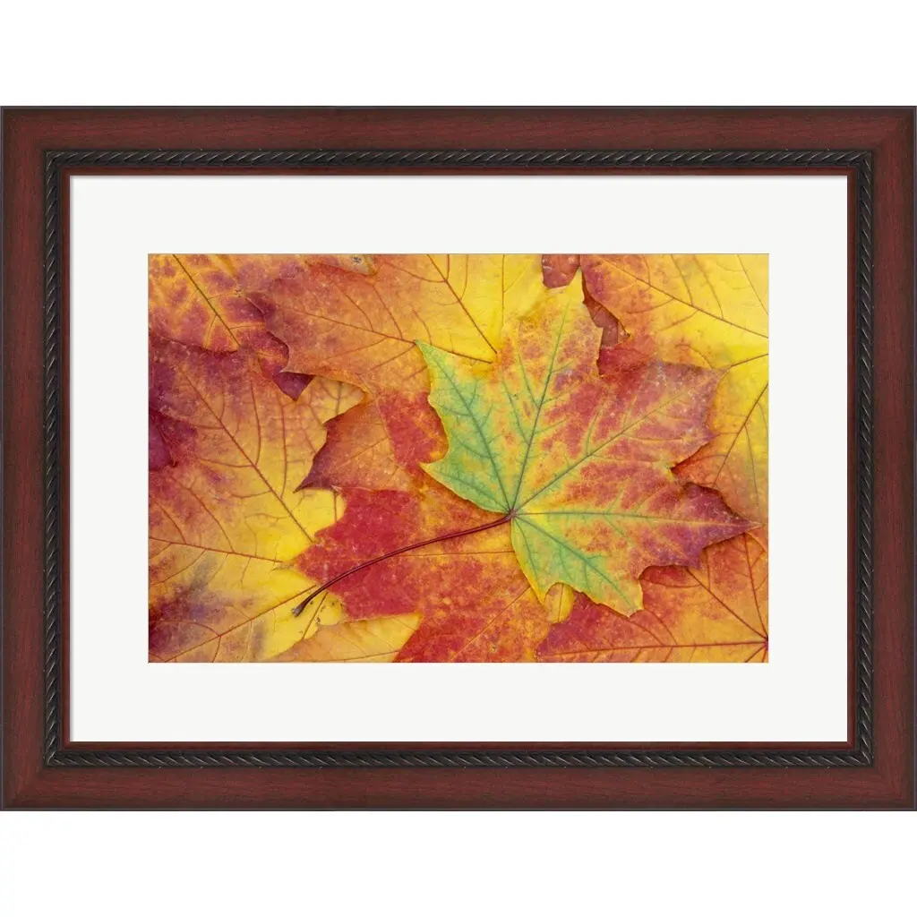 Maple Leaf Pattern by Jamie & Judy Wild / Danita Delimont is a high quality piece of framed artwork. The finished size of this piece is 26" X 20". It has a Cherry Decorative Accent frame, is single matted and finished with high quality Acrylic Plexiglass. 100% Satisfaction Guaranteed.