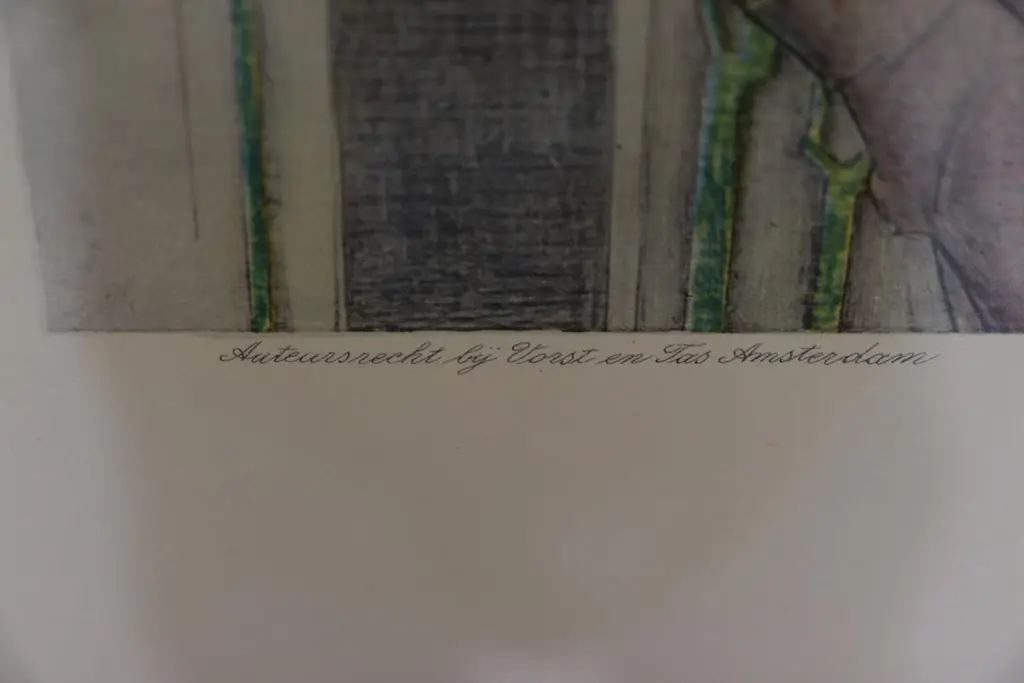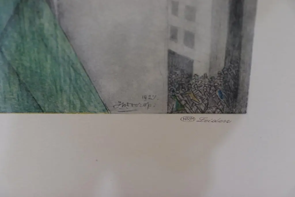 Dutch painter and graphic artist Jan Toorop is considered one of the most important members of a group of artists that led the way towards the new directions art in the Netherlands ventured into between 1890 and 1930. Born in 1858, this set of works from 1926 is from late in the artist's life and was finished two years before his passing. It is best considered a summary of his life and is one of his last pieces. Titled 'The Sacrifice', Toorop depicted the friends who accompanied him on his life's path as well as the people he admired. He expressed the wish it could serve as a testament and farewell to his friends. Shortly afterwards he died in hospital in The Hague. Visible age to print, several available in assorted sizes. Newly framed.