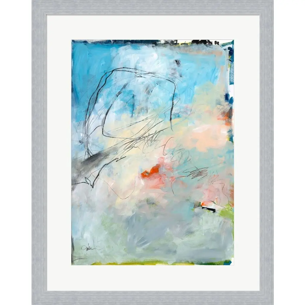 Blue Fade No. 2 by Jan Weiss is a high quality piece of framed artwork. The finished size of this piece is 17" X 21.25". It has a Slim Solid Platinum Silver frame, is single matted and finished with high quality Acrylic Plexiglass. 100% Satisfaction Guaranteed.