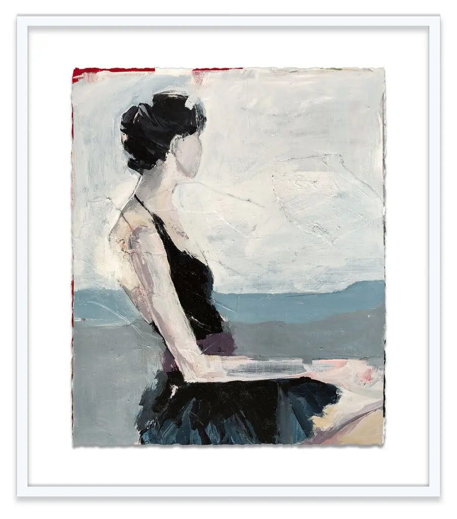 Seen first at One Kings Lane: This figure work from Jane Feil is a captivating study of form and color. Printed on high-quality watercolor paper with deckled edges and floated over a white mat, this piece is displayed in a simple wood frame and arrives ready to hang.Born in Chicago, Jane Feil received a BFA from the California College of the Arts in 1976. In the four decades that have followed, her paintings have focused on the endlessly fascinating human figure. Feil has raised six children, and has lived in Santa Monica for nearly 30 years.